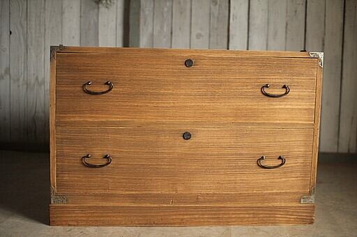 味のある木製の引き出し2段 チェスト 桐箪笥