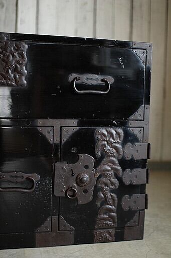 綺麗な打ち出し金具時代庄内箪笥 扉付き