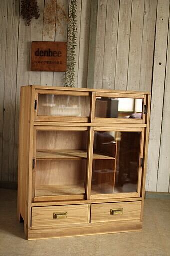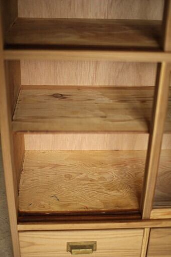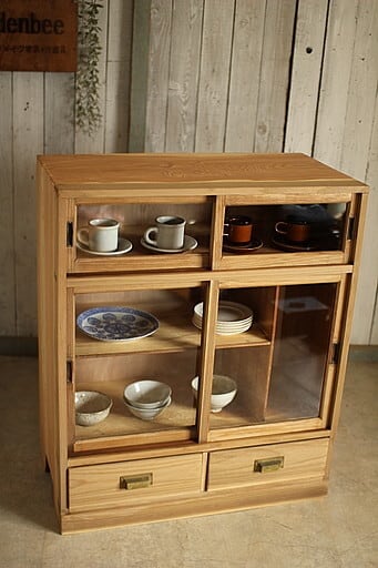 古い木枠のガラス戸棚 引き出し2杯