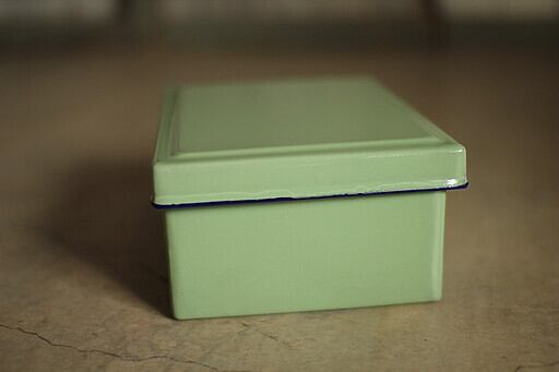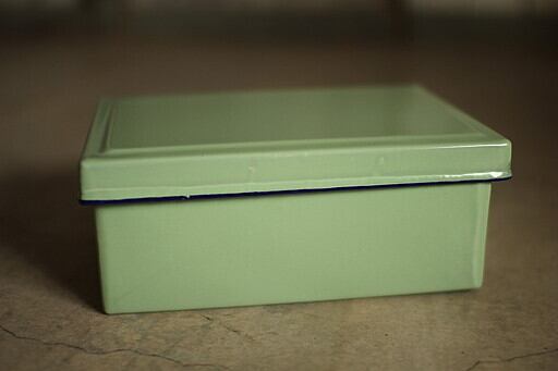 古いホーロー容器 蓋付き 1/4 小 バット 琺瑯