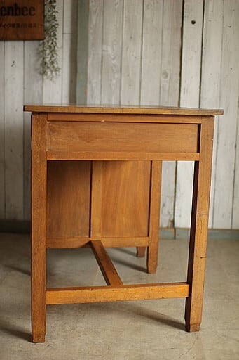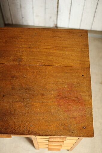 古い木製の片袖机 引き出し6杯 ワークデスク