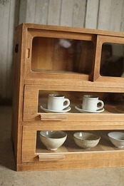前面ガラスの引き出し2段×ガラス戸棚×木製小引き出し2段