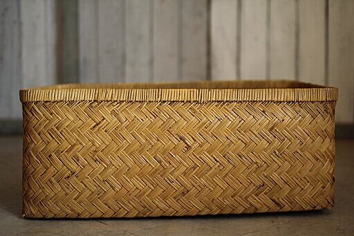 古い竹編みの収納かごです。