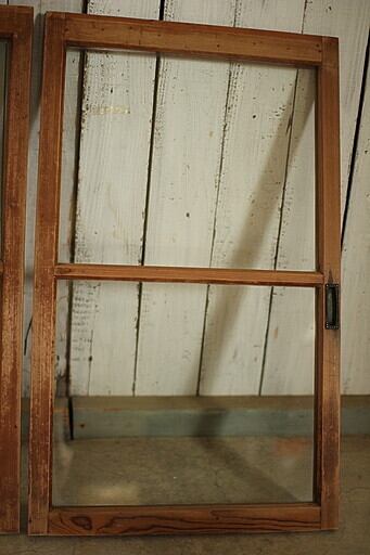 古い小ぶりな木枠の格子ガラス戸2枚セット