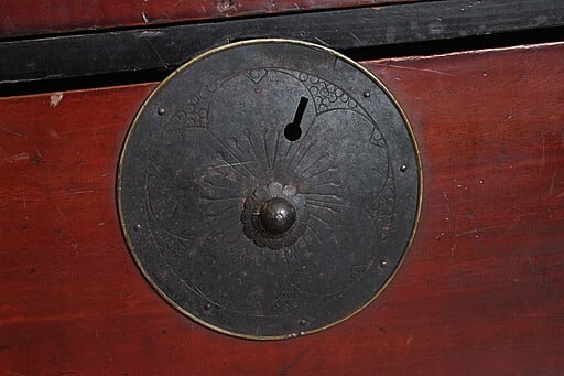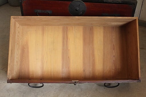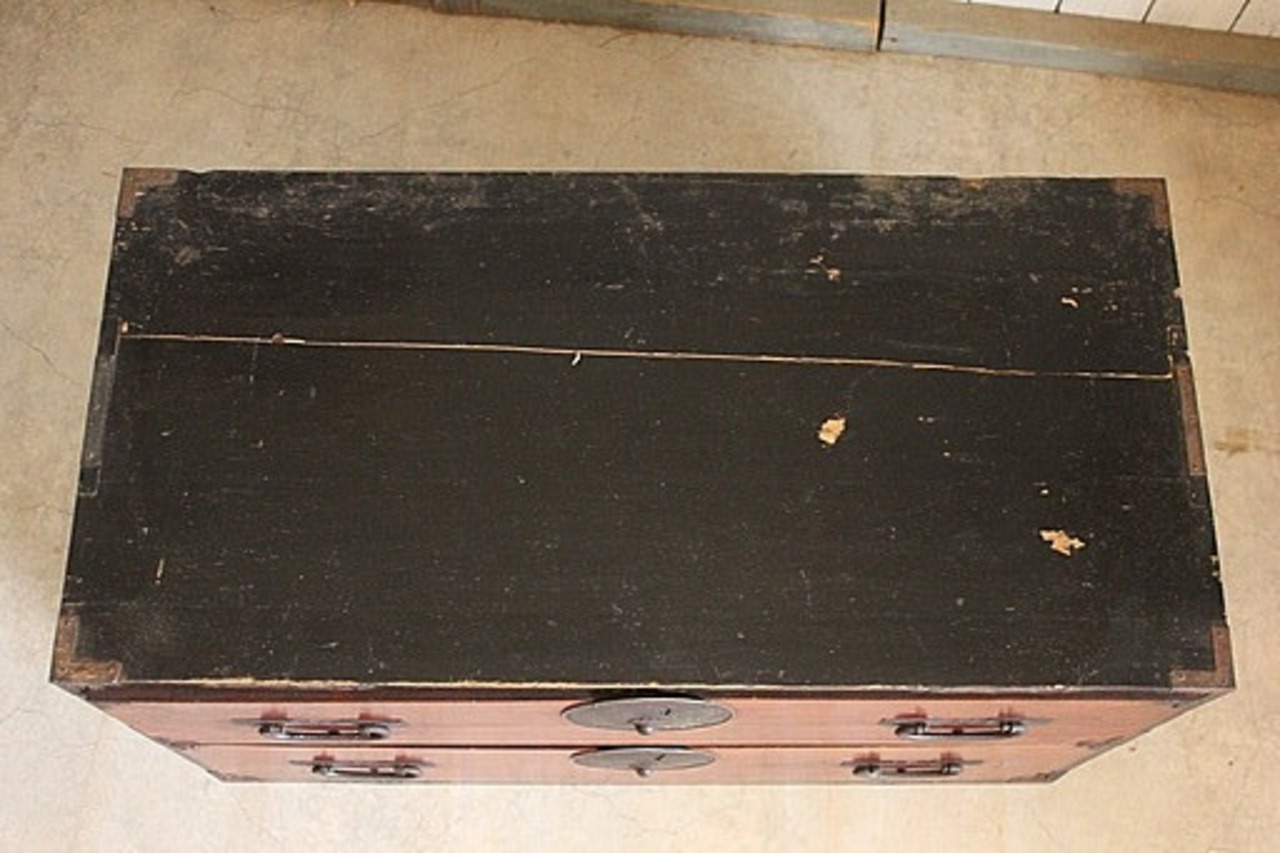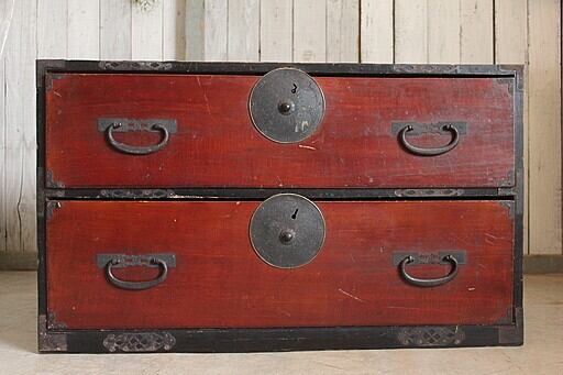 ジャンク品 桜模様丸金具 古いタンス 時代箪笥 引き出し2段
