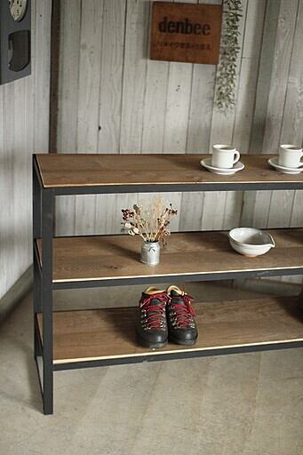 古い鉄フレームと古材の収納棚