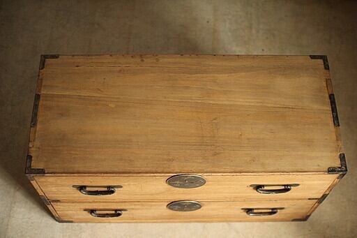 味のある丸金具時代箪笥 桐箪笥 抽斗2段