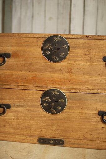 味のある丸金具時代箪笥 桐箪笥 抽斗2段
