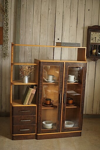 ガラス戸棚×収納棚×小引き出し3段