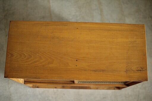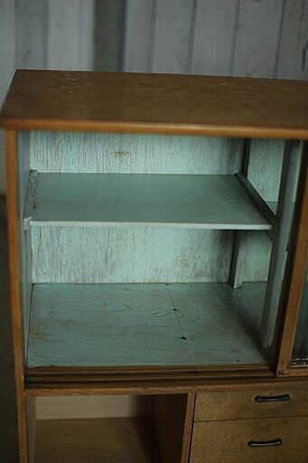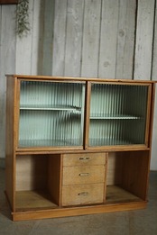 古い木製ガラス戸棚×小引き出し3段です。