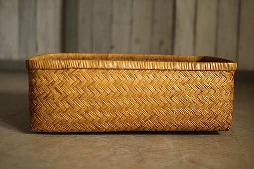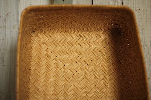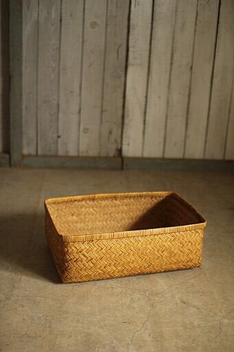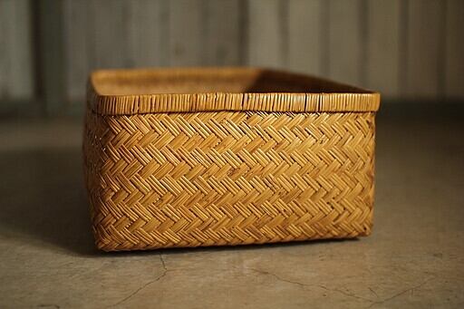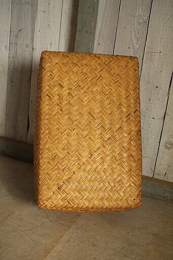 古い竹編みの収納かごです。