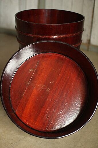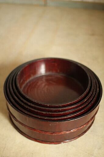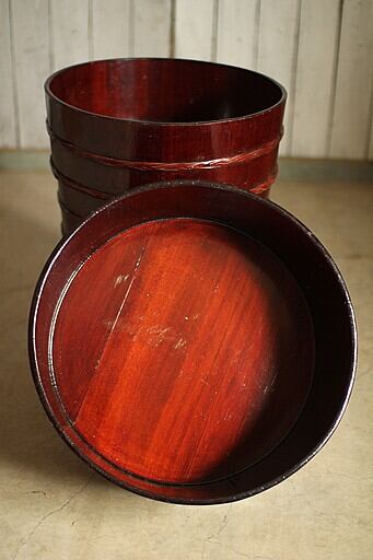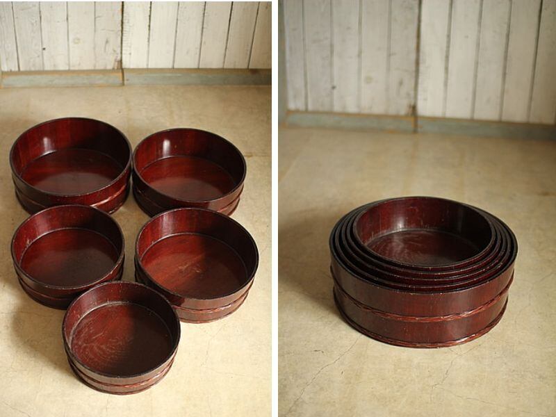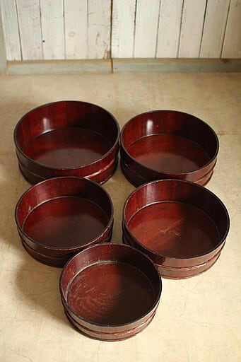 明治期 古い桶 五つ組 丸切り溜め 収納箱 木箱