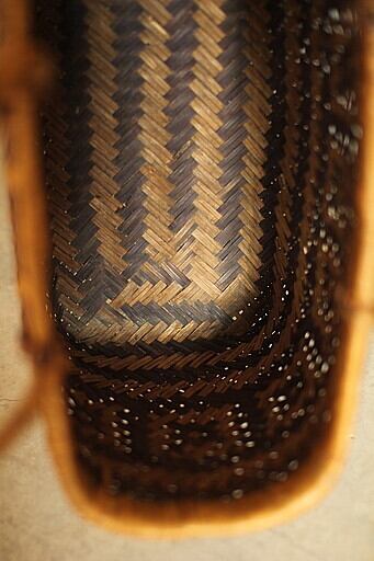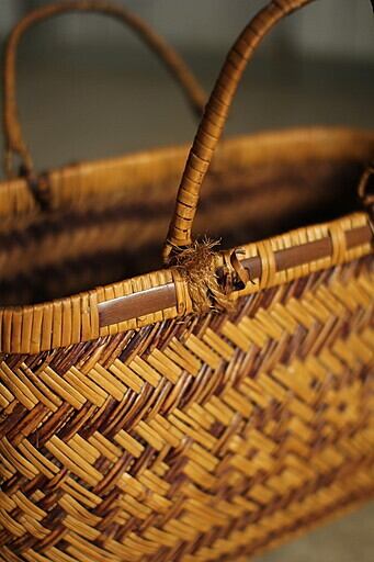 取っ手の付け根部分に竹のほつれ、切れがありますので補強が必要かと思います。