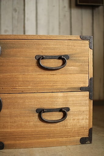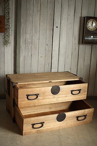 味のある丸金具時代箪笥 桐箪笥 抽斗2段