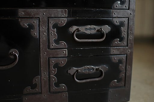 綺麗な丸金具 庄内手許箪笥