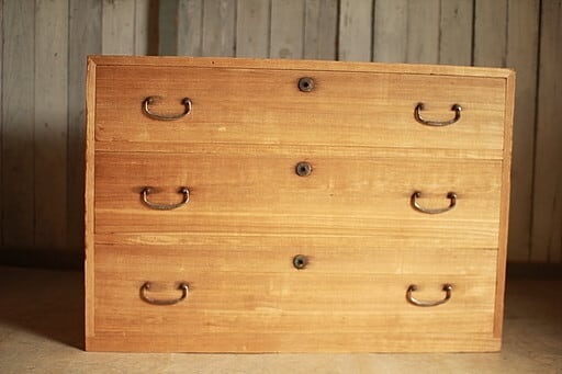 味のある木製のチェスト 引き出し3段 桐箪笥
