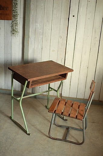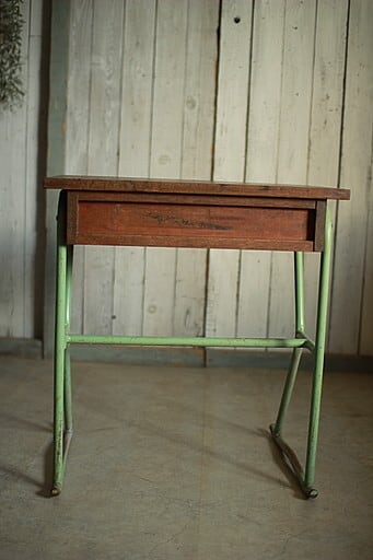 雰囲気の良い古い小学校の机 鉄脚 古材