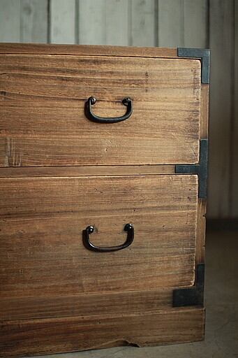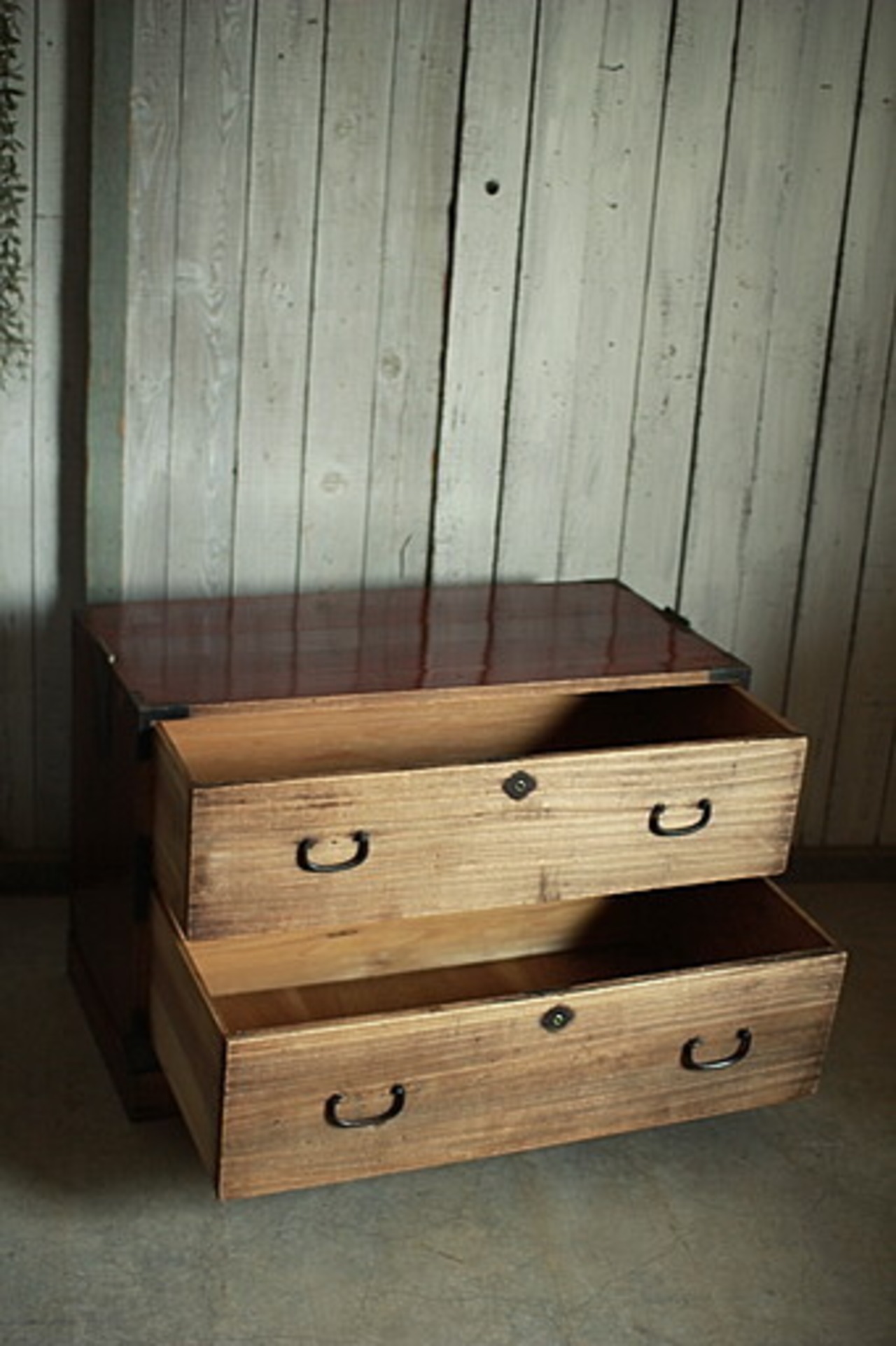 古く味のある木製の引き出し2段 チェスト 桐箪笥