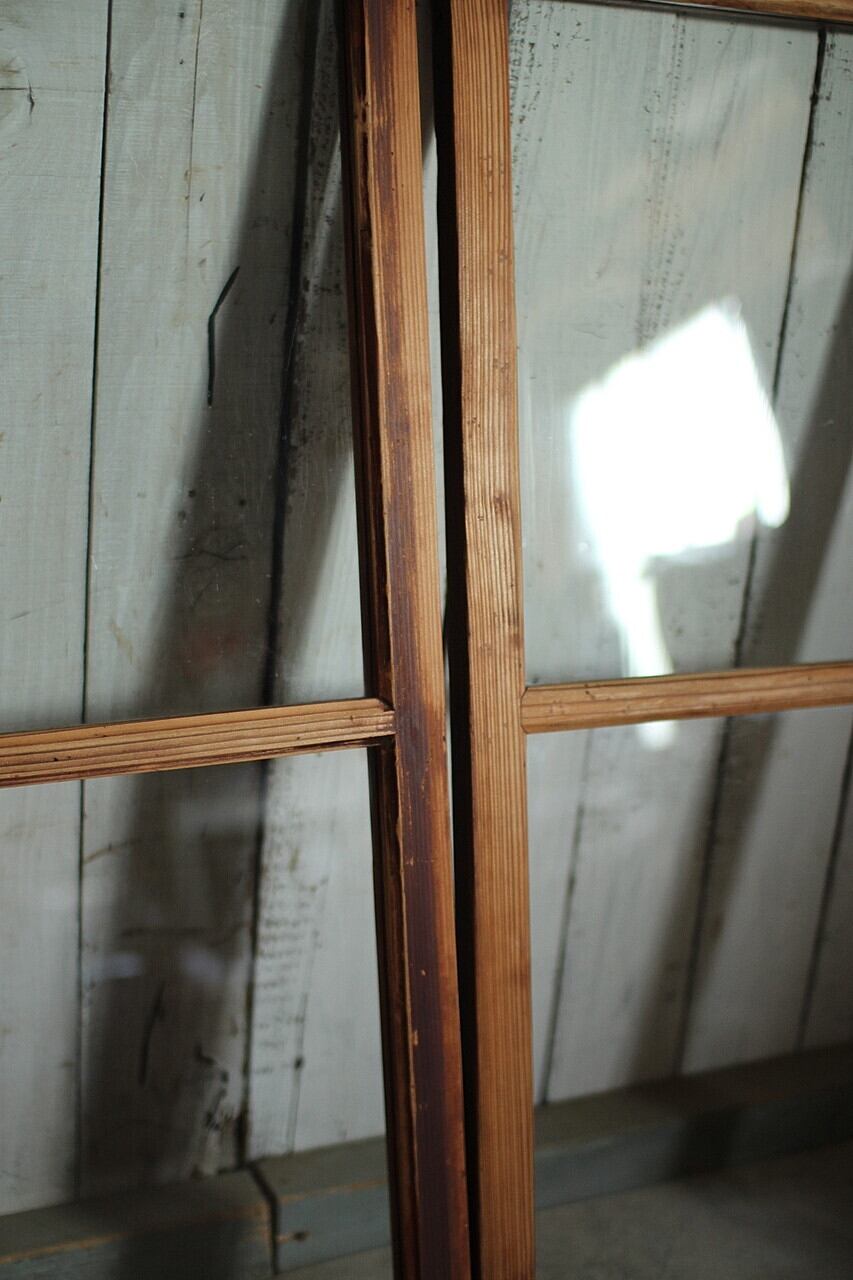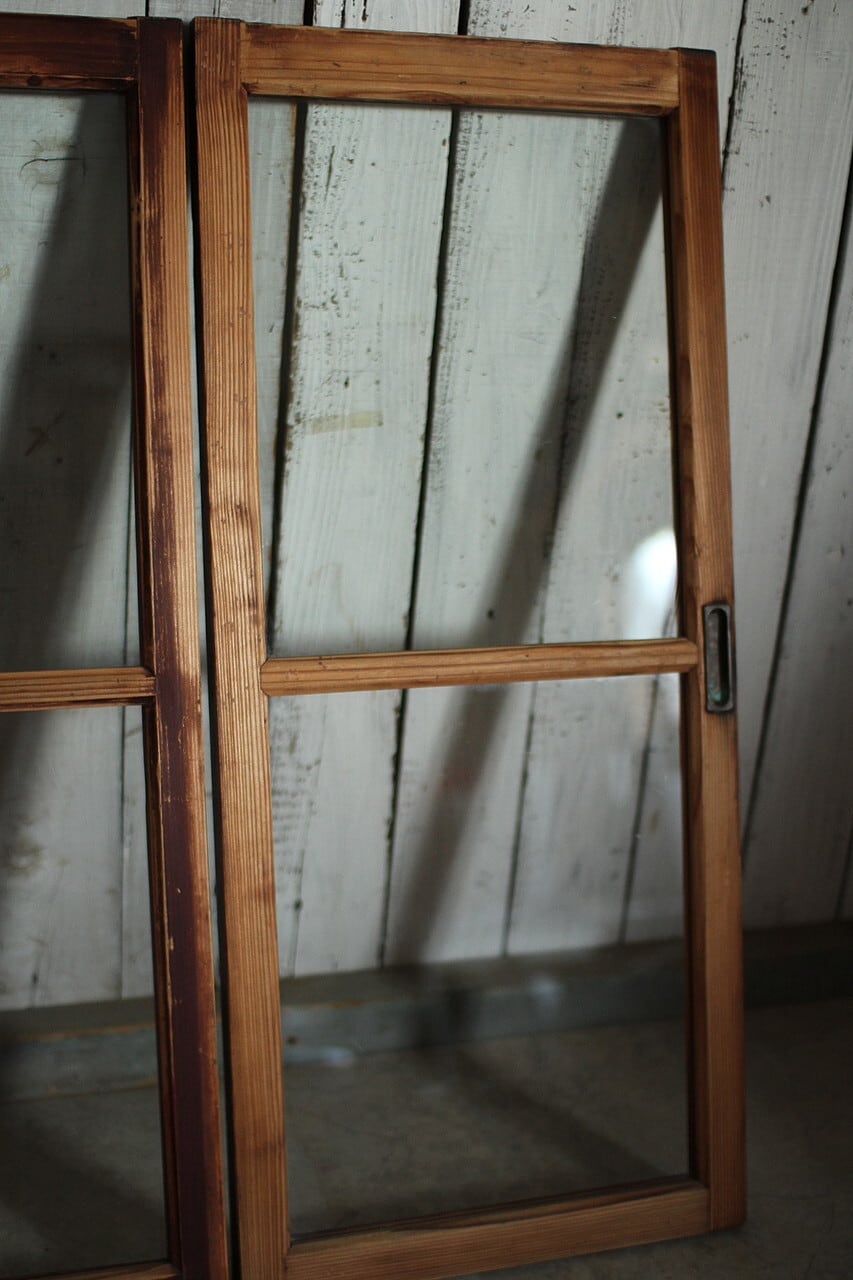 古い小ぶりな木枠の格子ガラス戸2枚セット