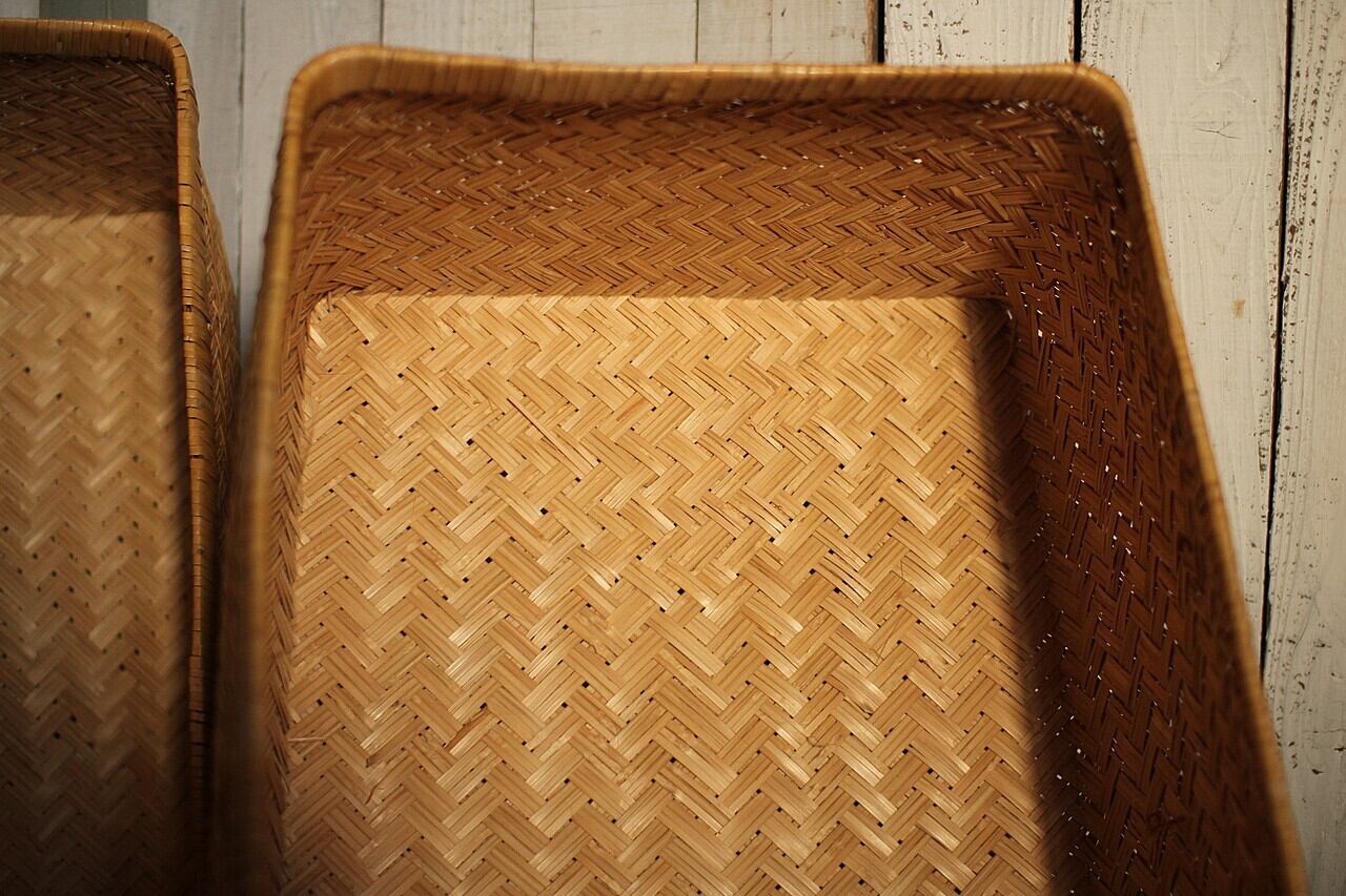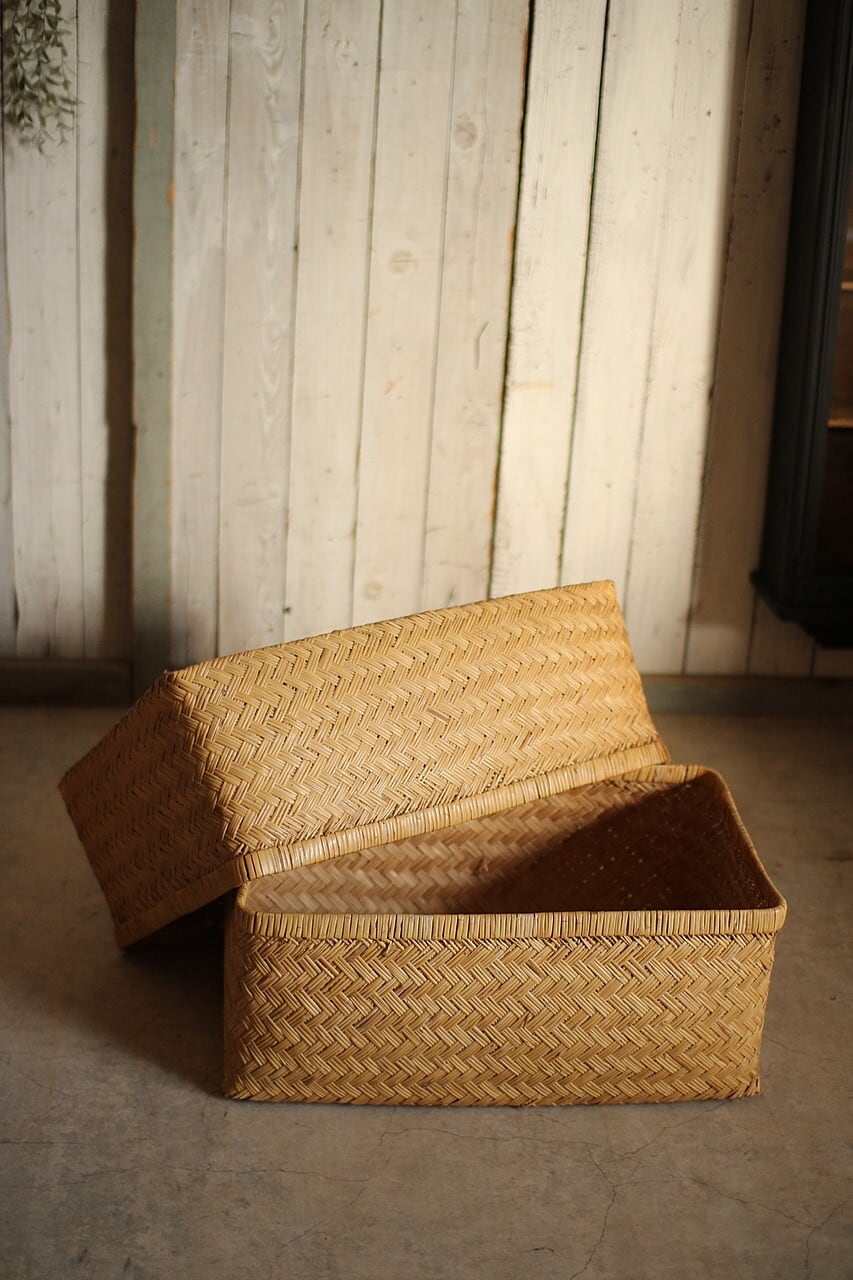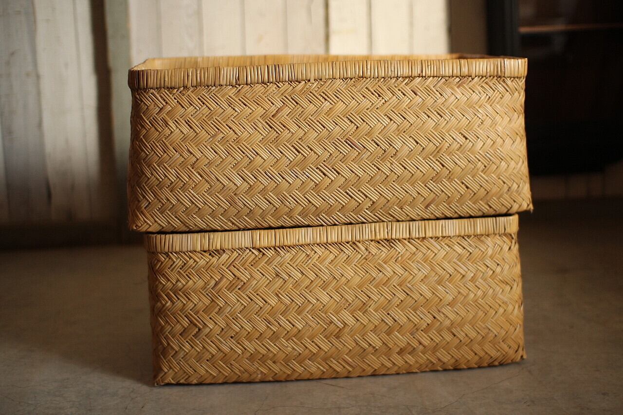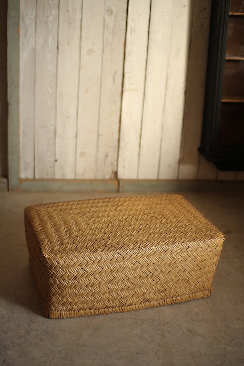 状態良く形の綺麗な古い竹編みの収納かご 行李