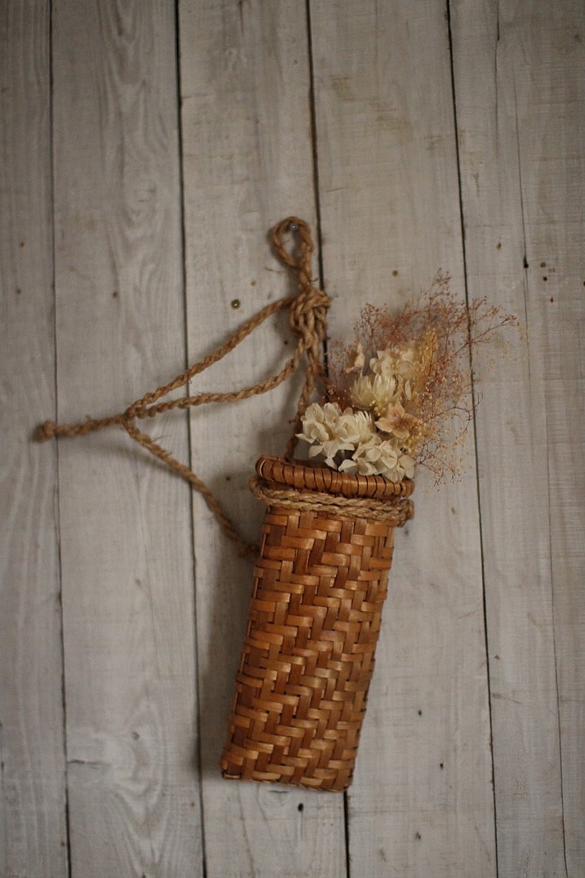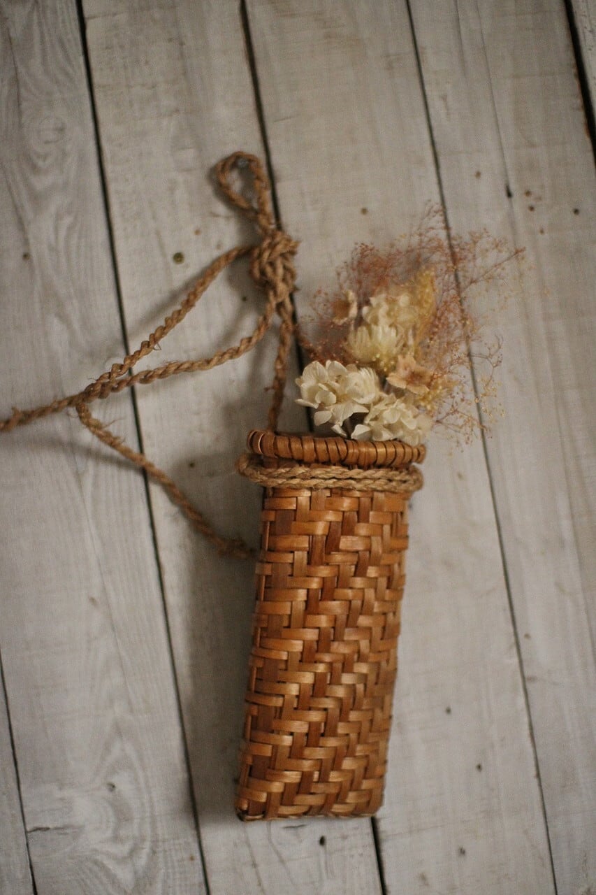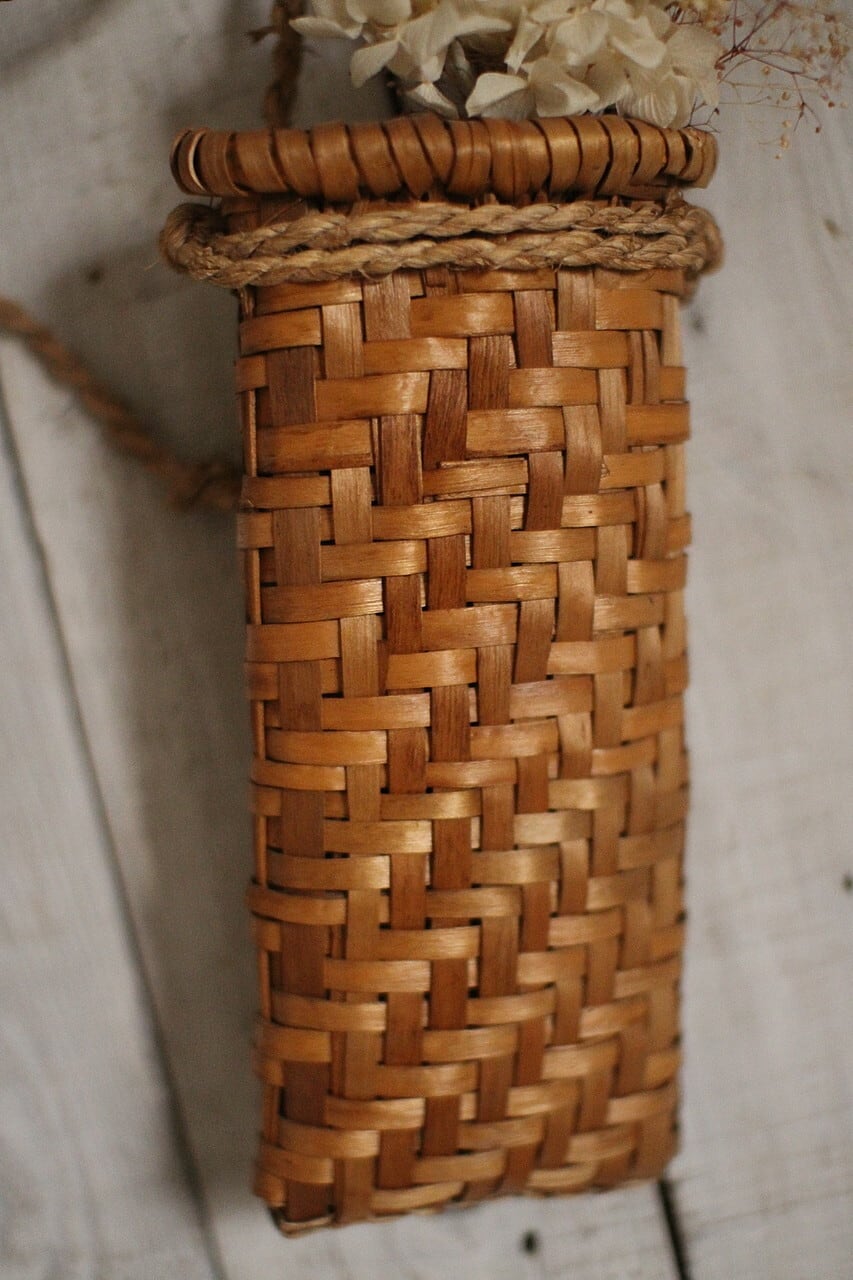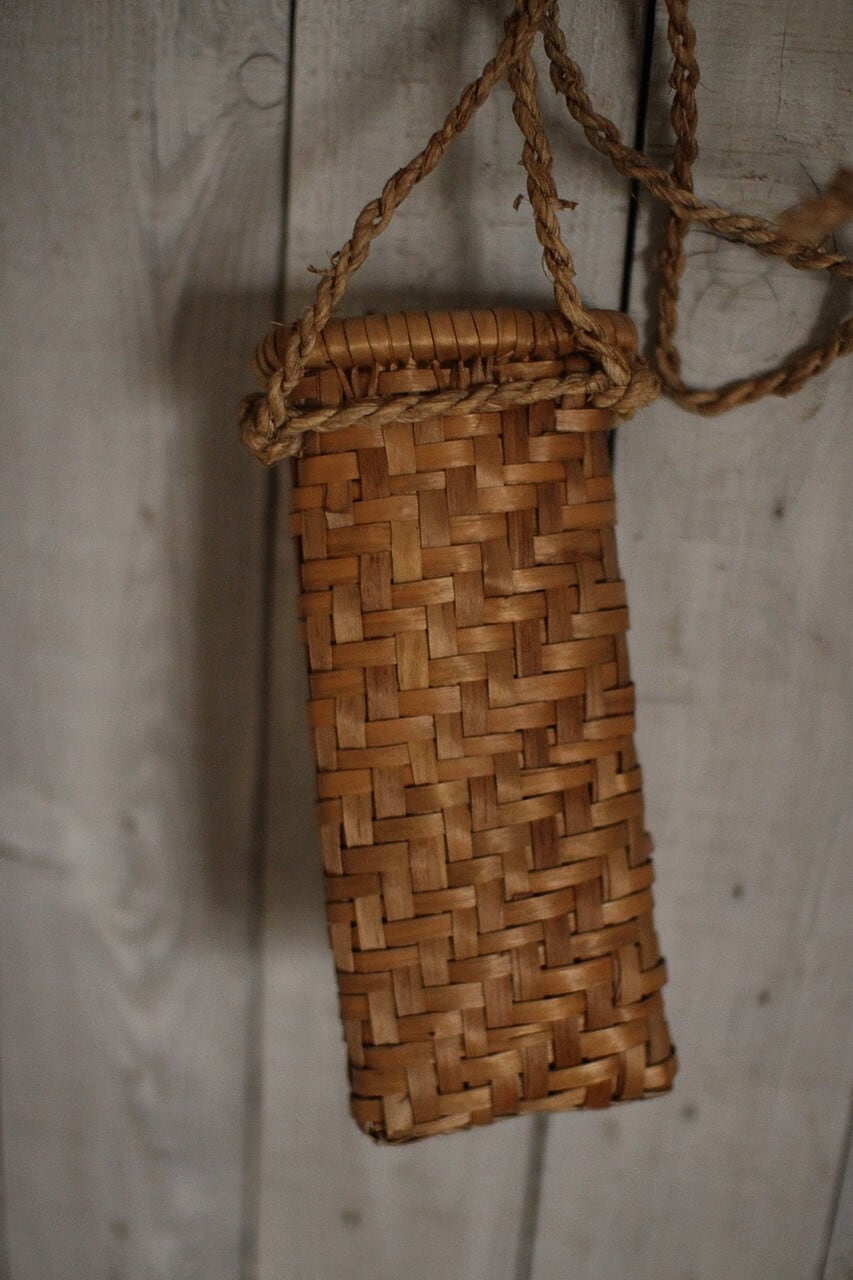古い小さなかご イタヤ細工