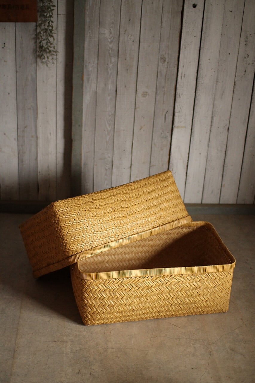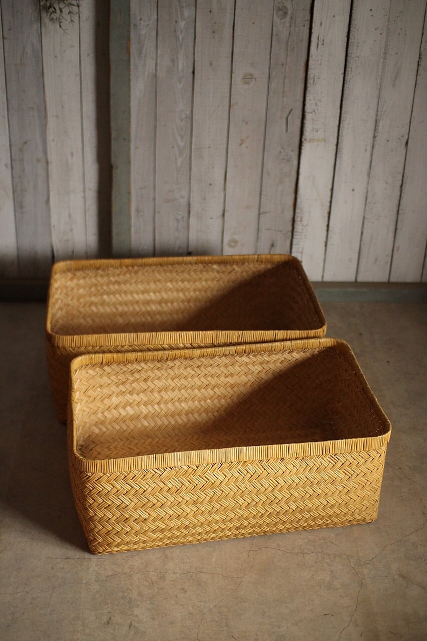 状態良く形の綺麗な古い竹編みの収納かご 行李