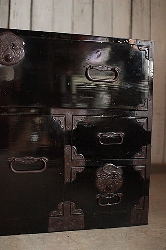 綺麗な巾着金具庄内箪笥 抽斗4杯