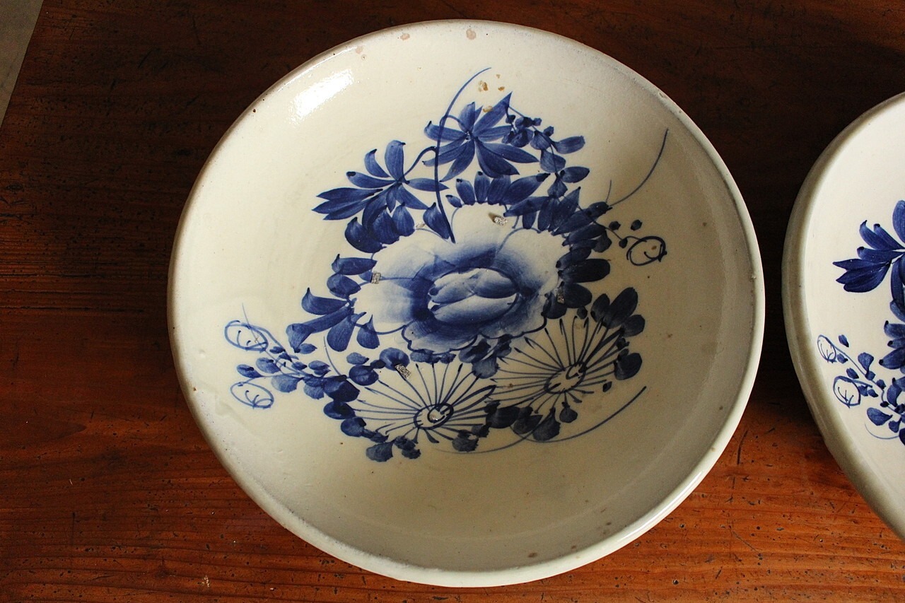 古い大皿 2枚セット 直径 31.5㎝ 染め付け こね皿