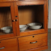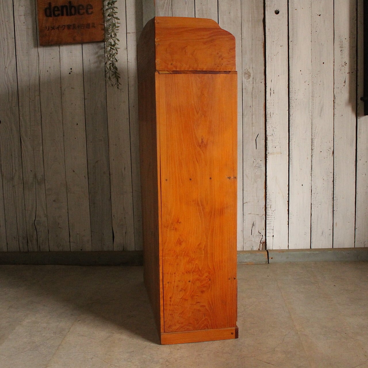 古いモールガラス戸棚 収納棚 小引き出し2杯