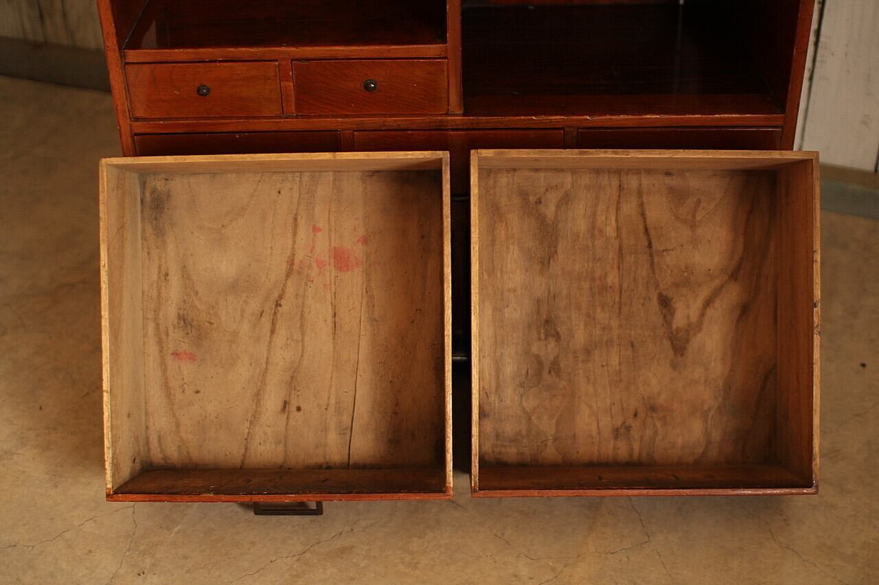 古い木製の茶箪笥 収納棚 小引き出し7杯