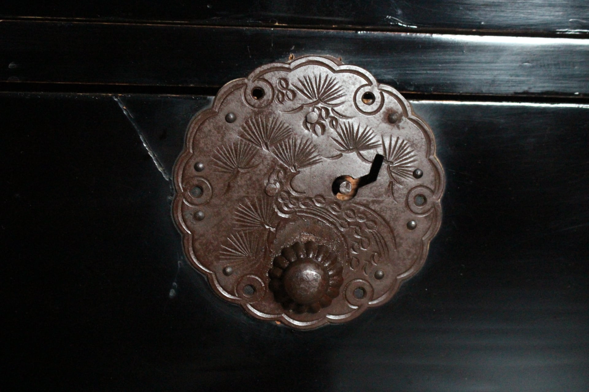 傷やはがれ,、枠に色あせがありますが、前面の黒漆塗は比較的綺麗な状態かと思います。