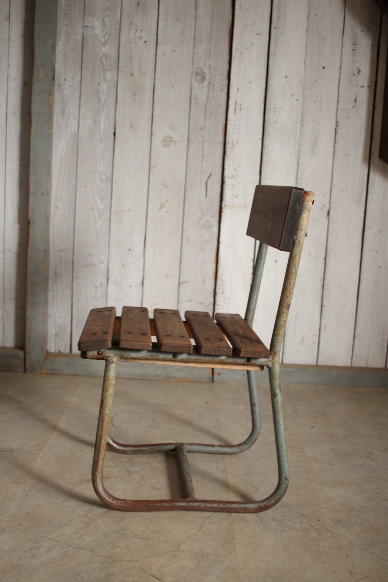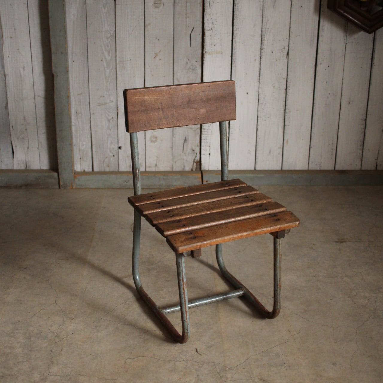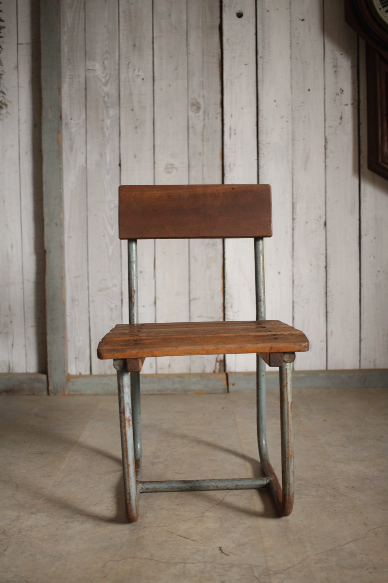 雰囲気の良い古い小学校の椅子 鉄脚 古材