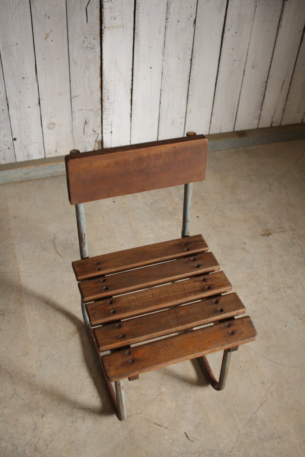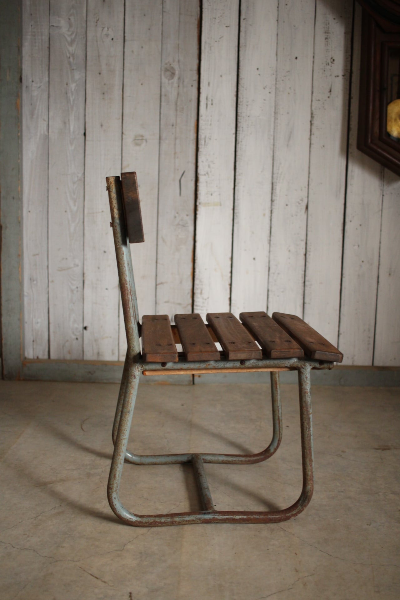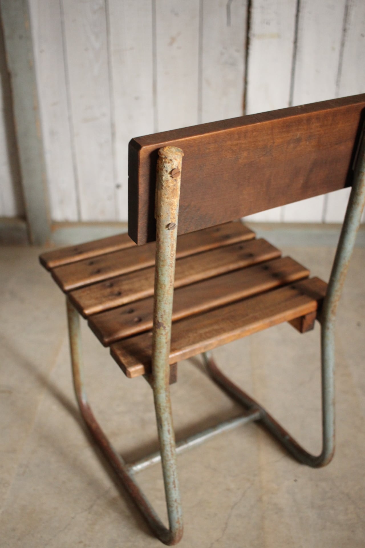 雰囲気の良い古い小学校の椅子 鉄脚 古材