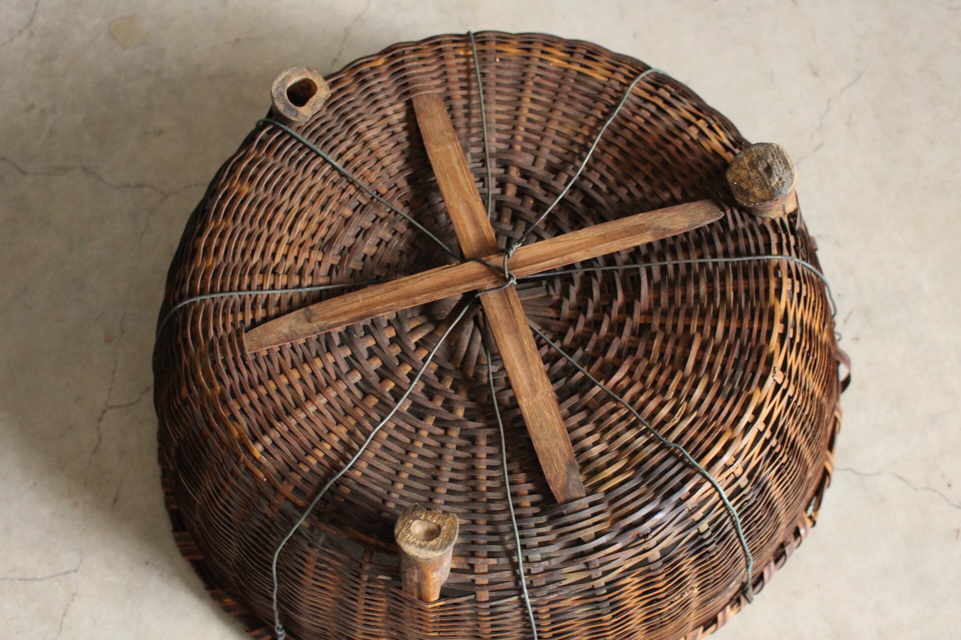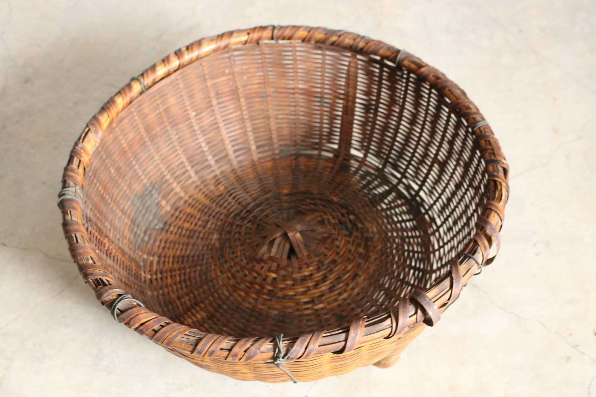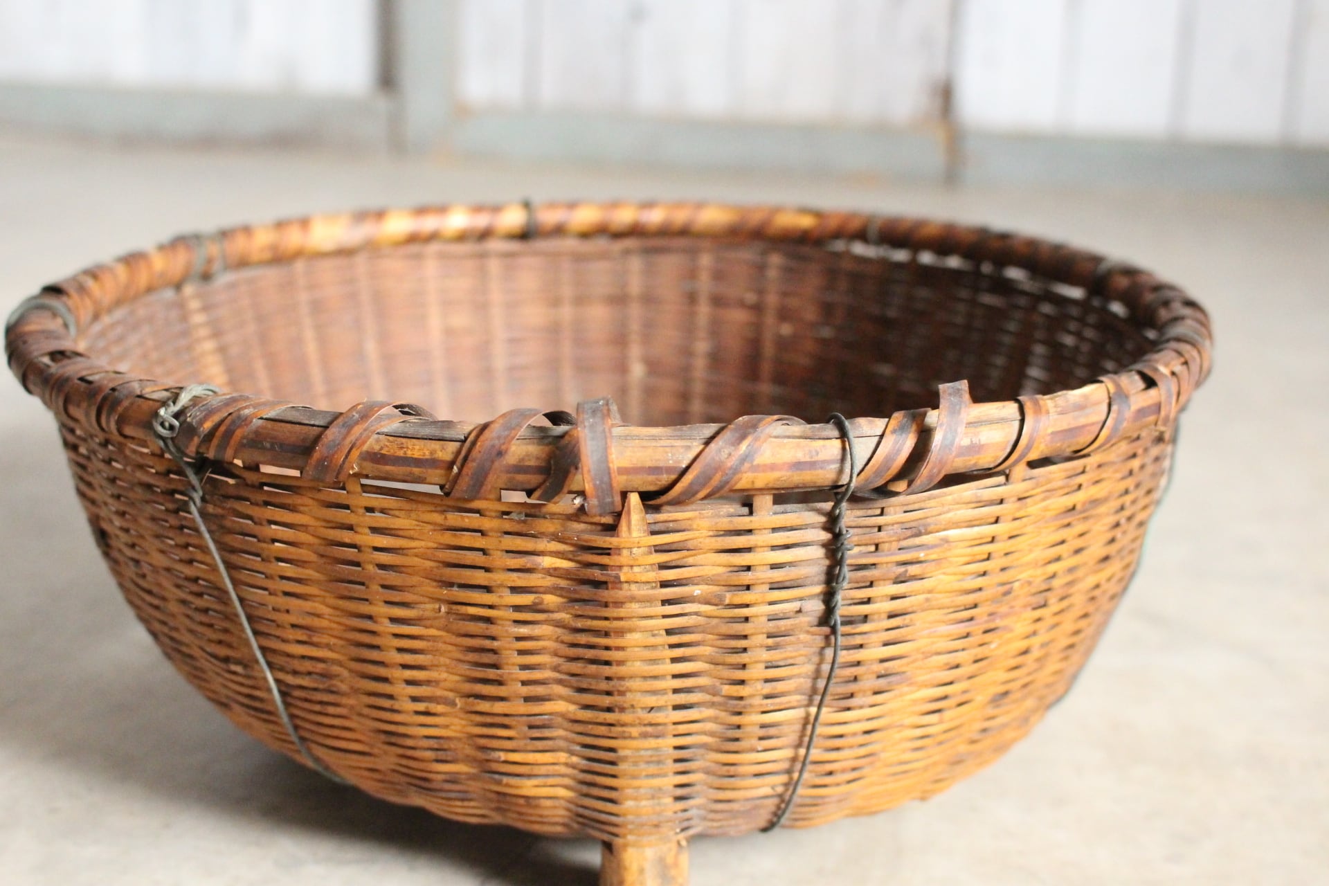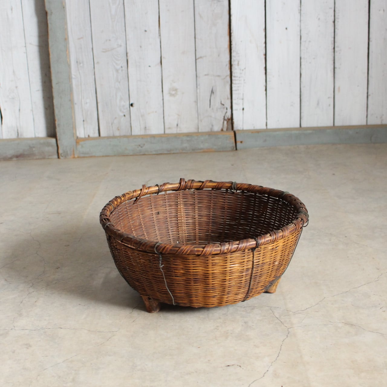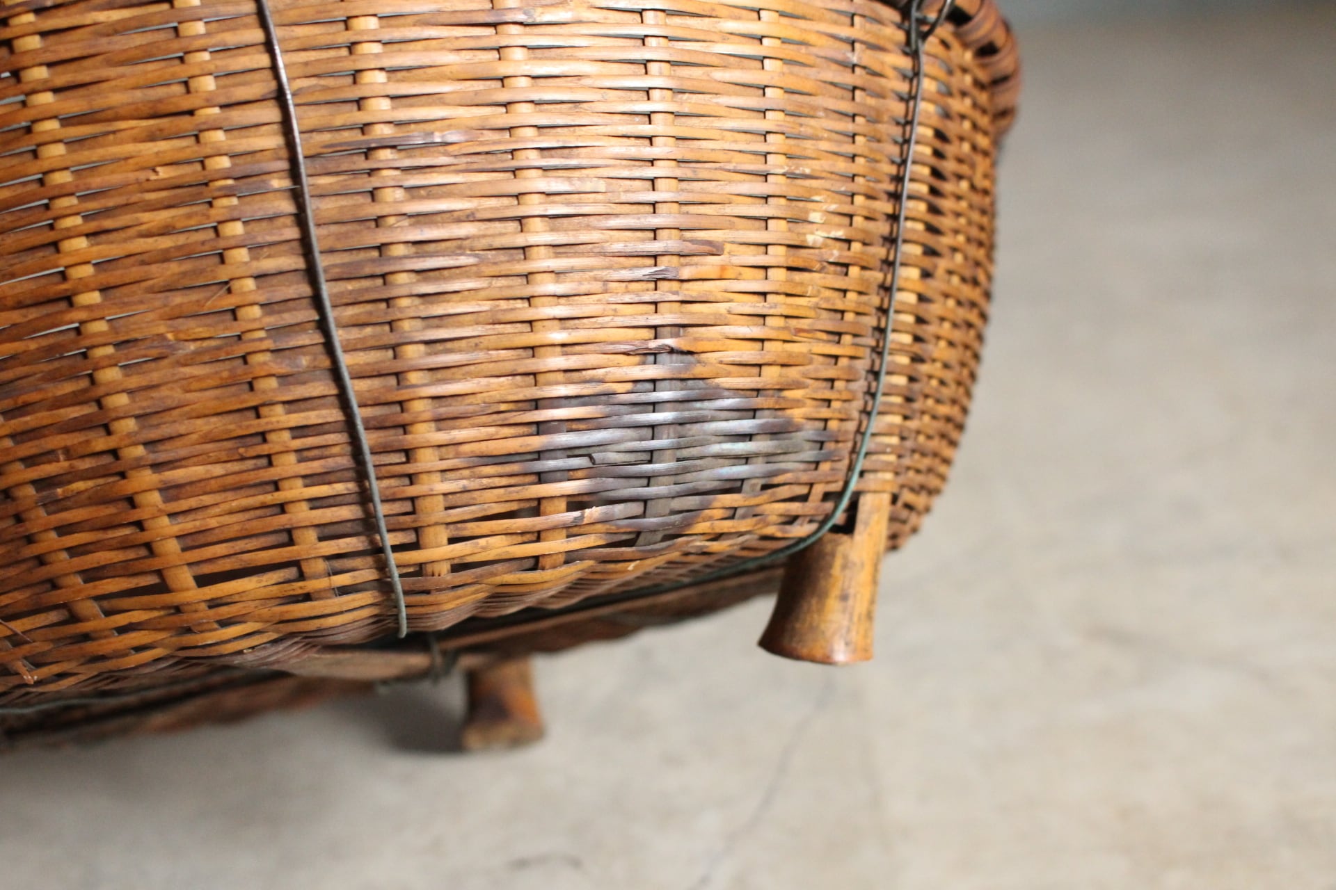 古く味のある竹かご 脚付き