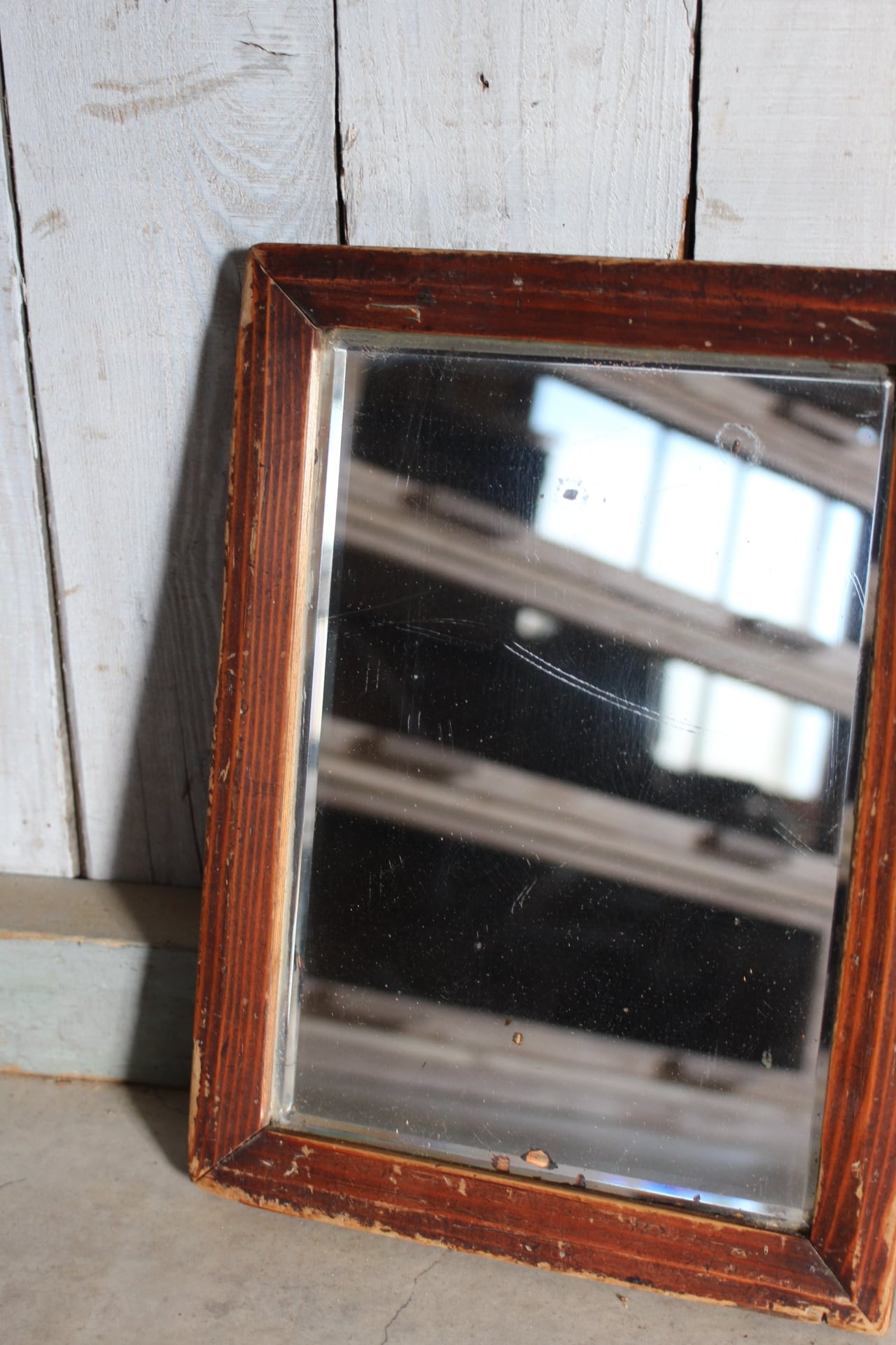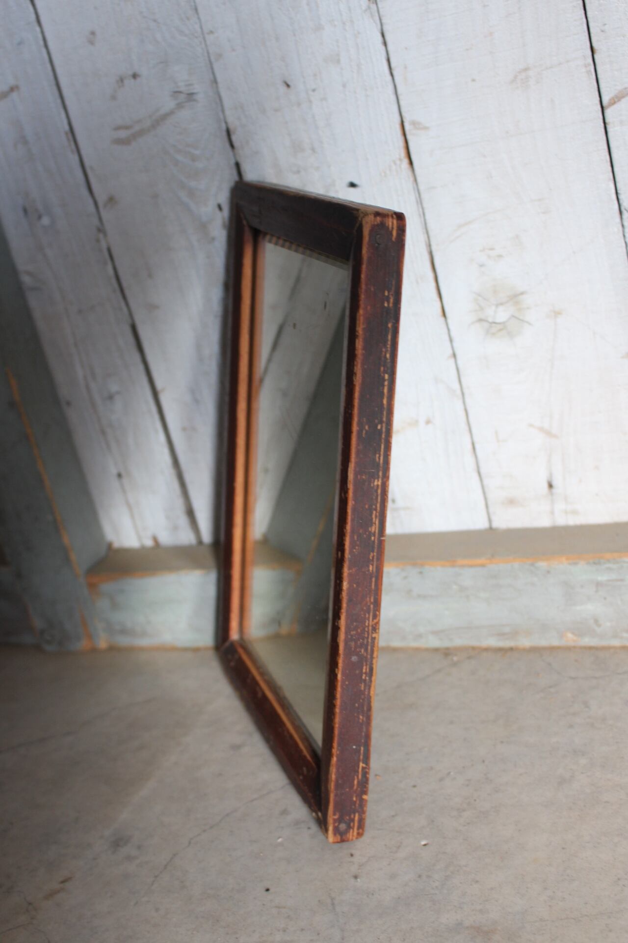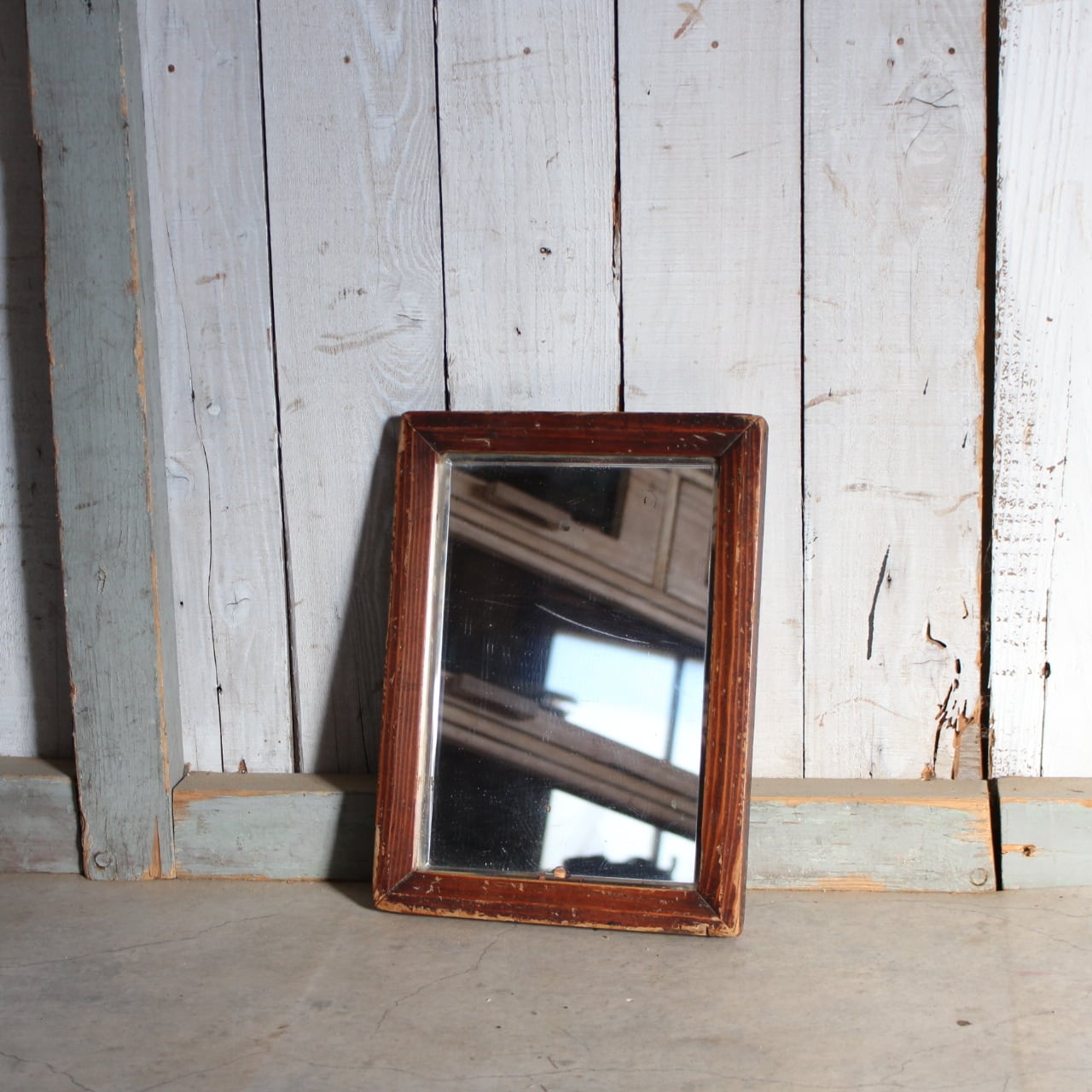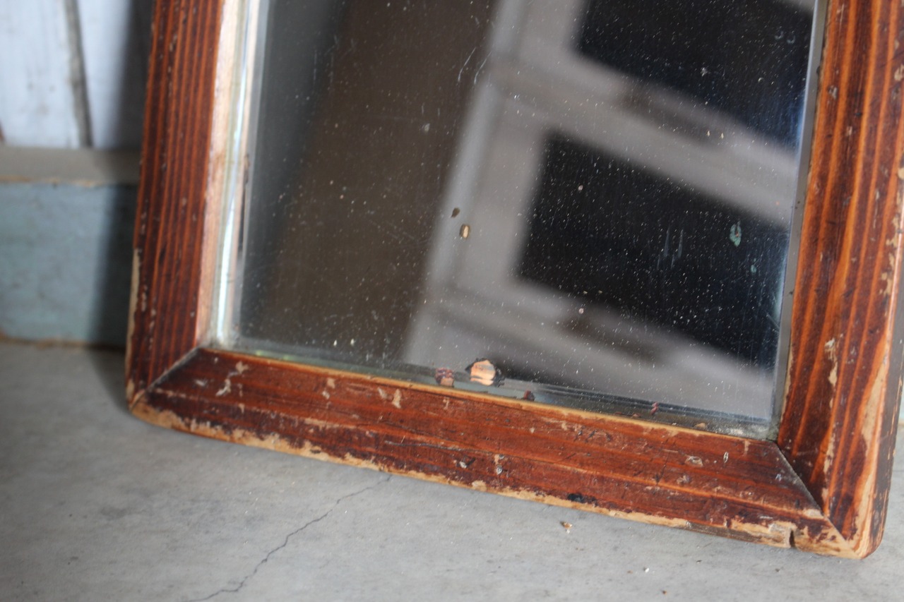 古く味のある小ぶりな木枠ミラー