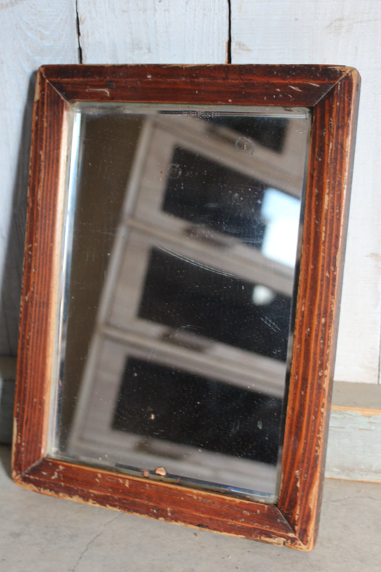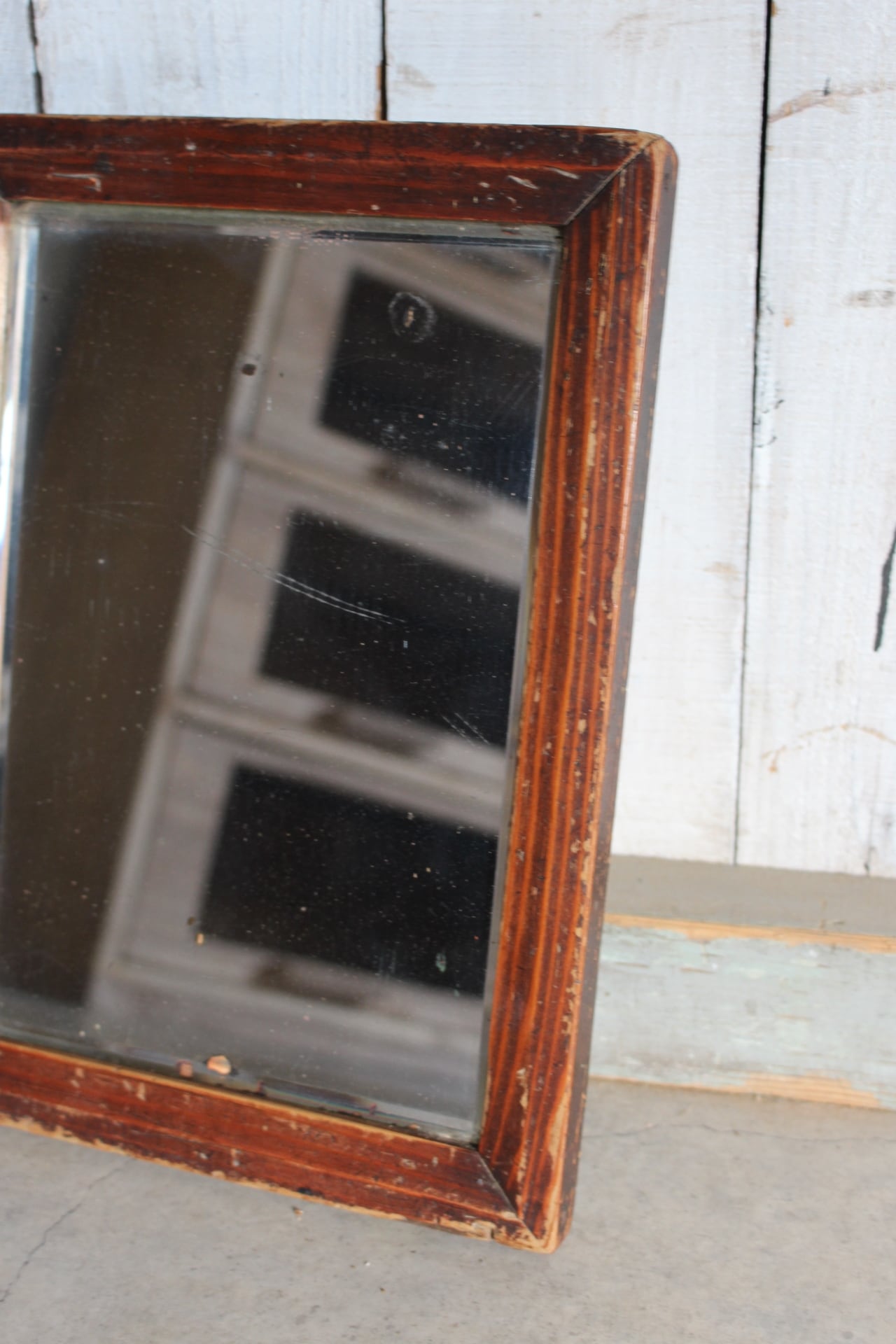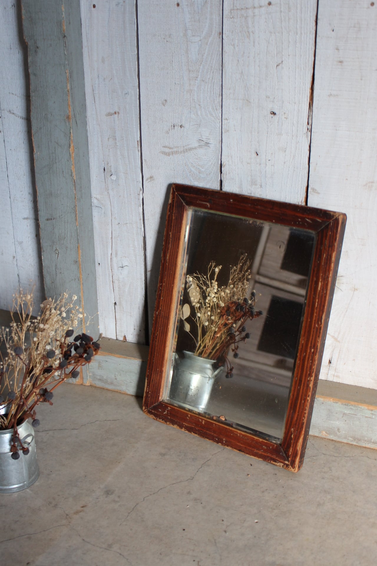 古く味のある小ぶりな木枠ミラー