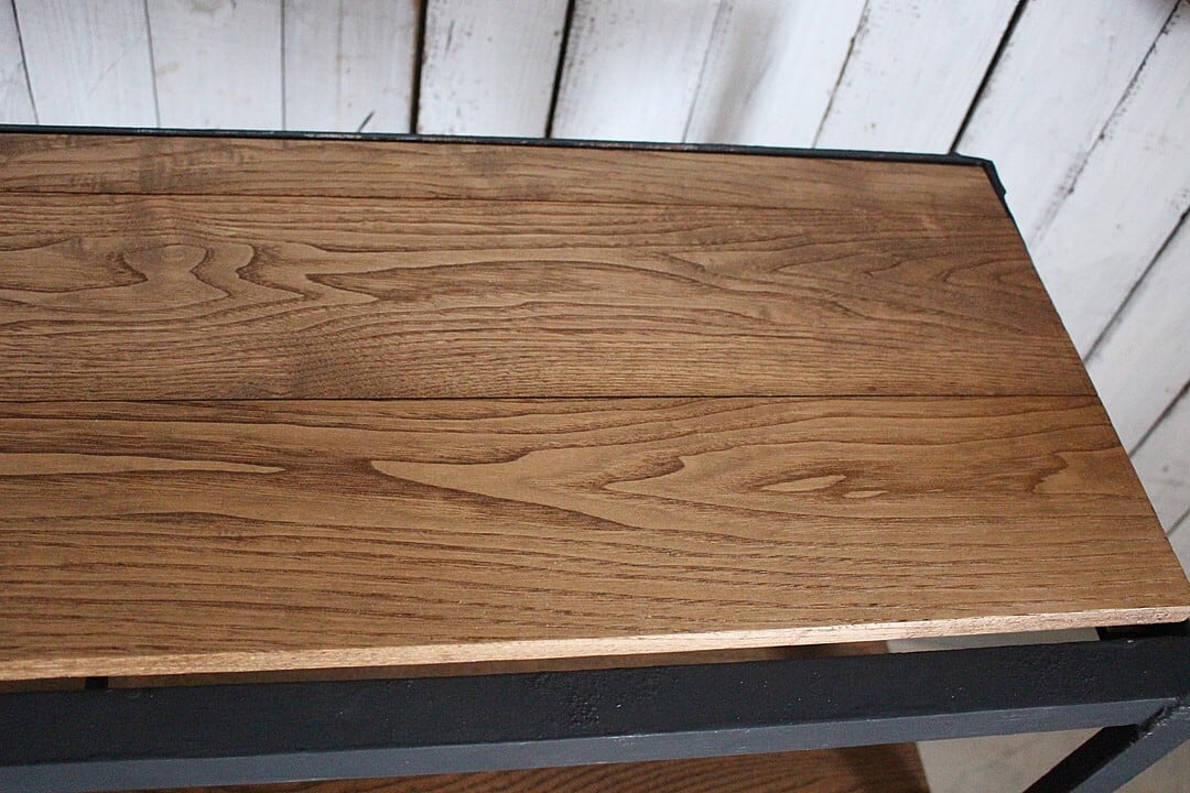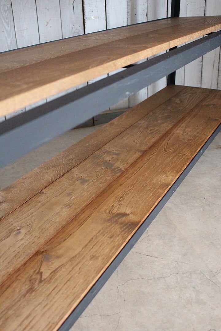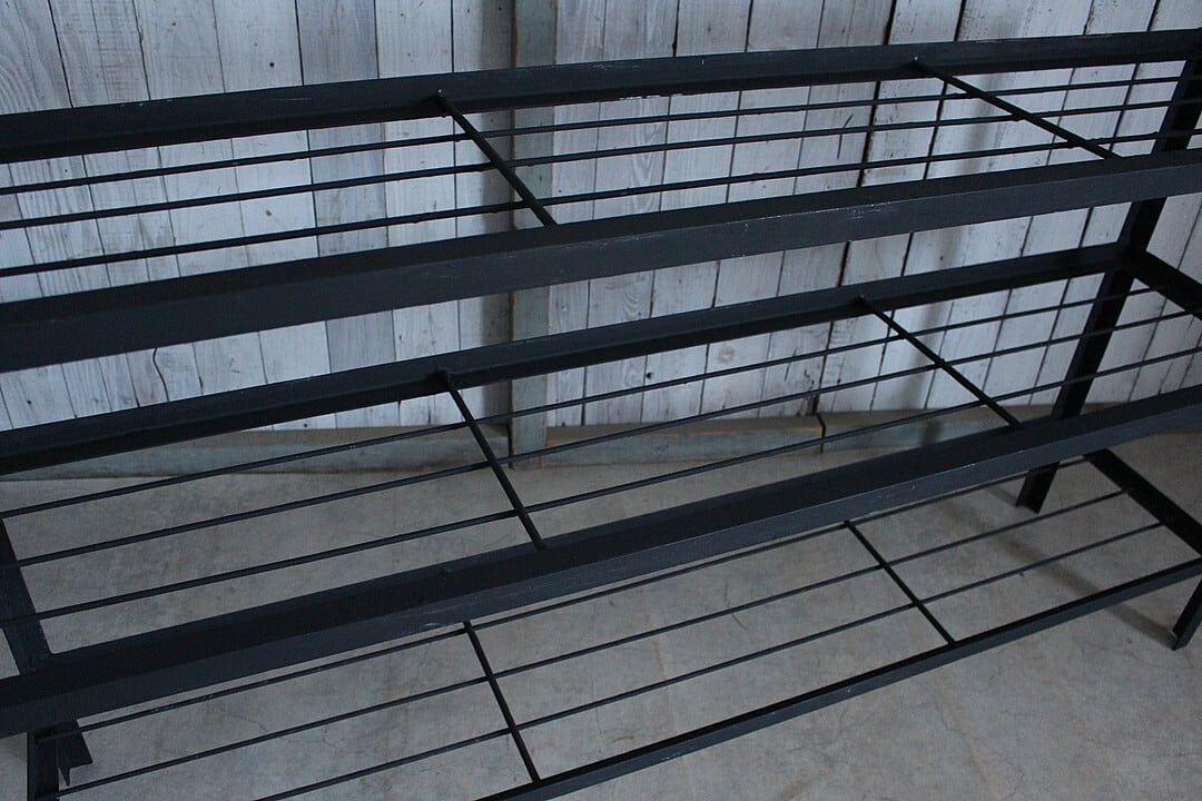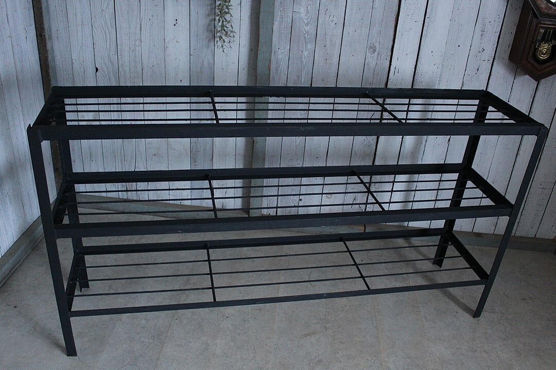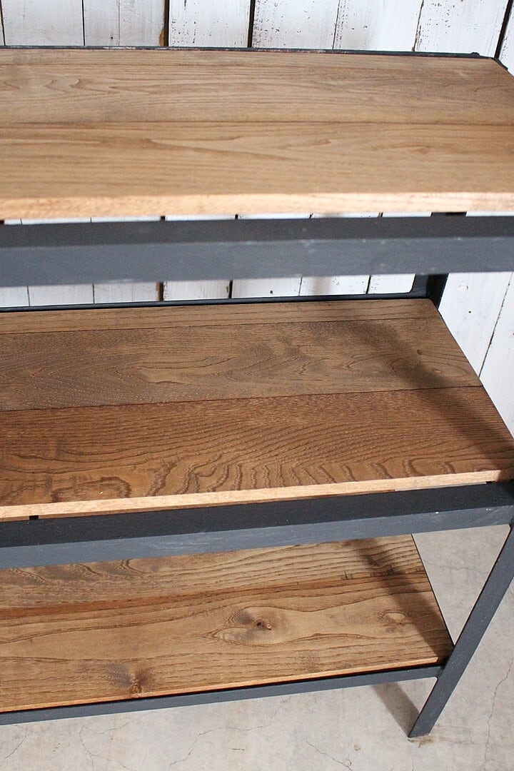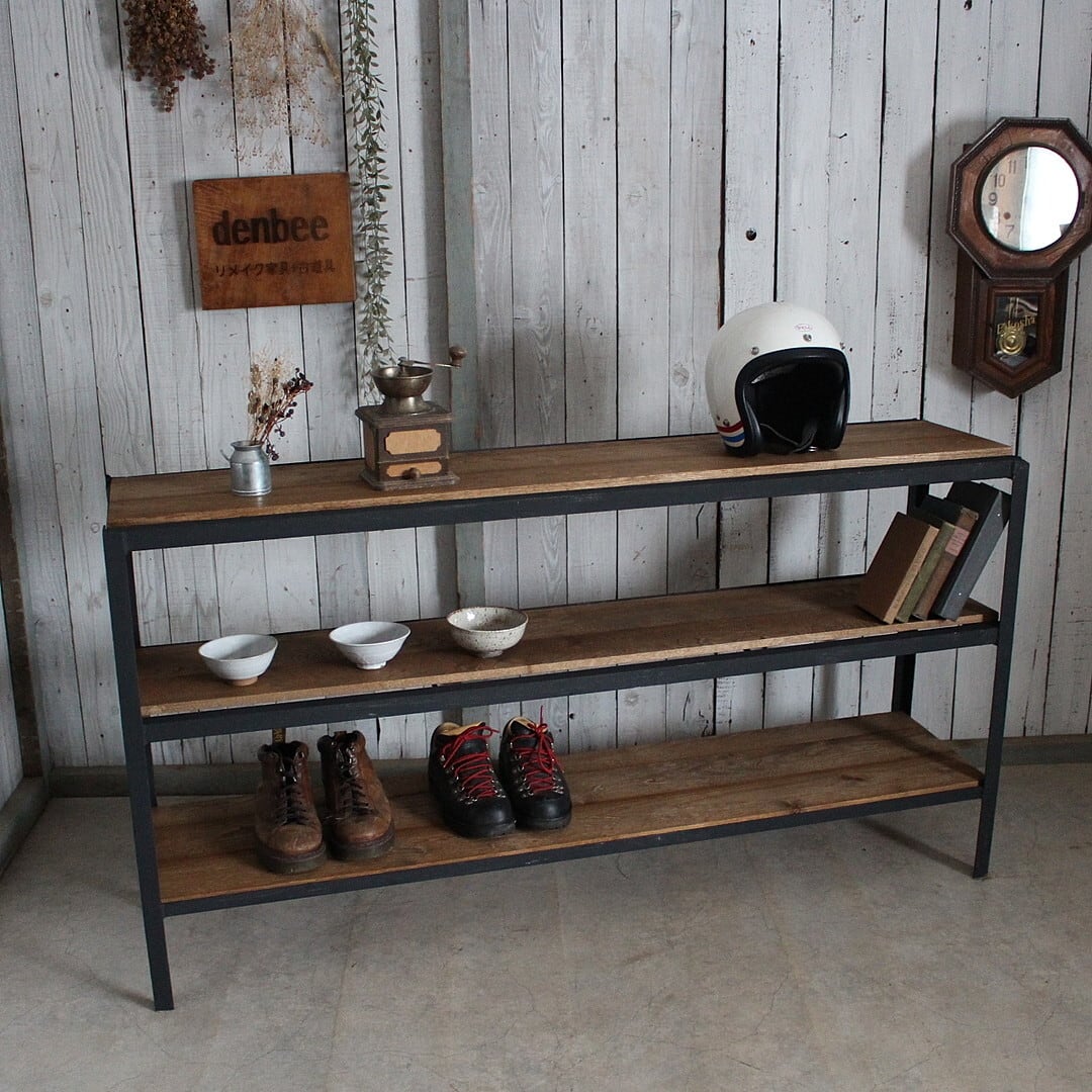 古いアイアンフレームと古材の収納棚