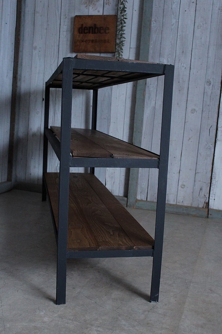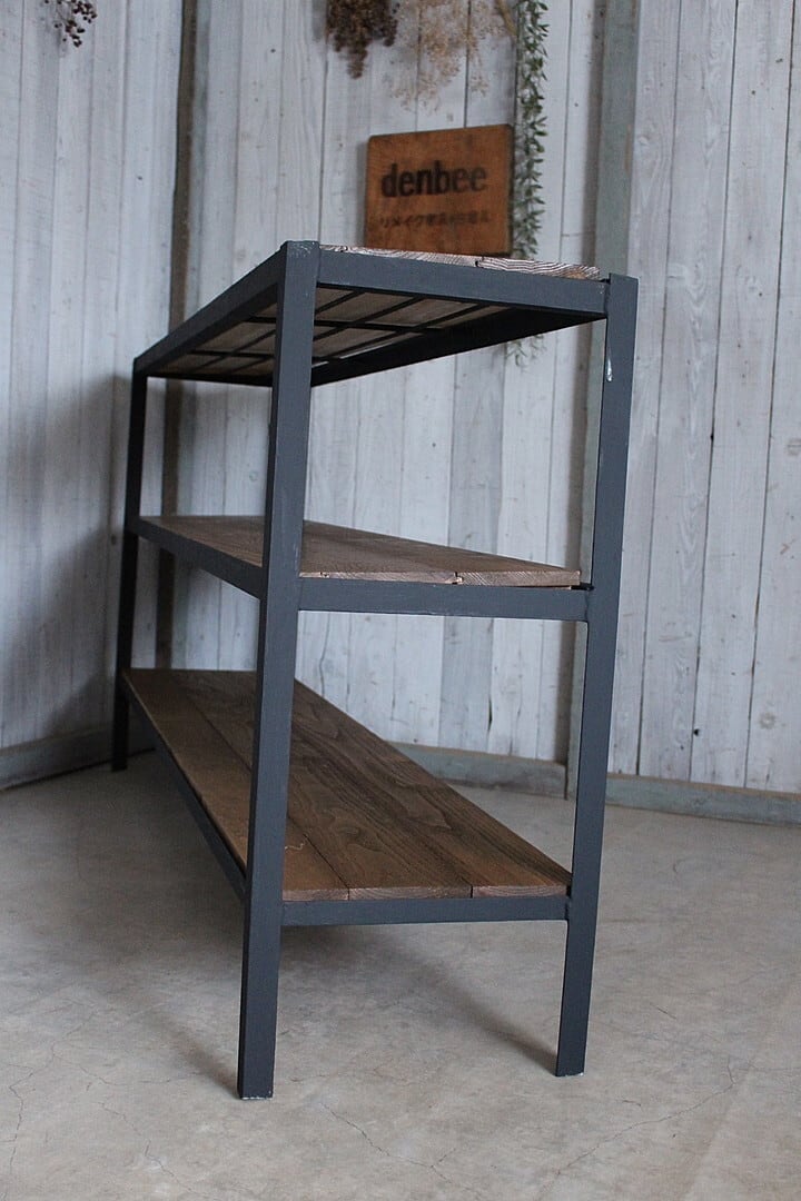 古い鉄と古材の収納棚です。