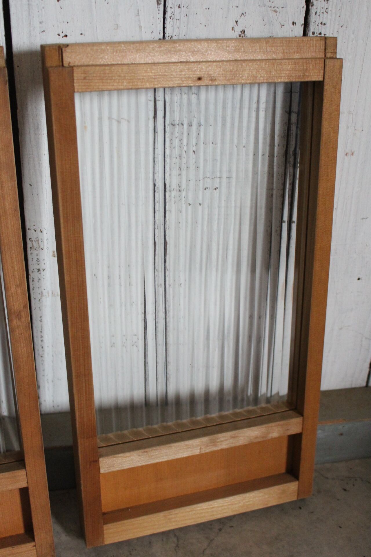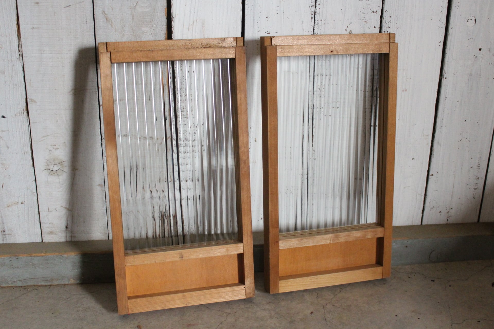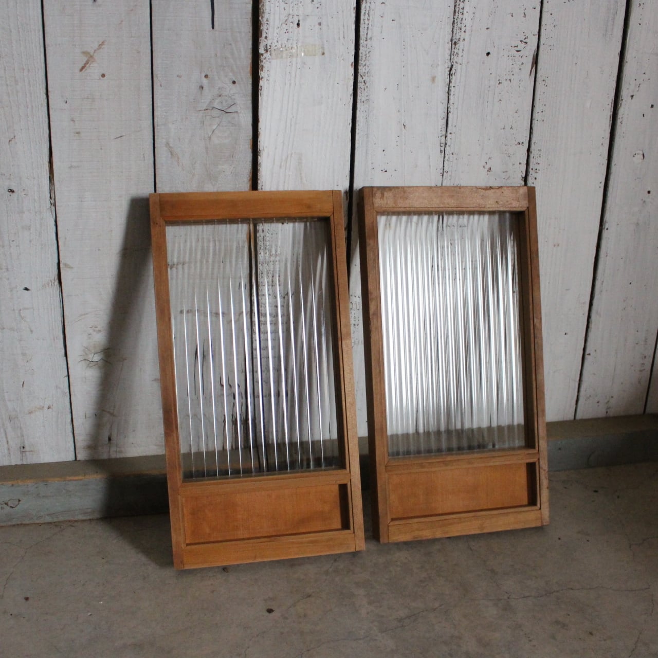 古い小さな木枠のモールガラス戸 2枚セット