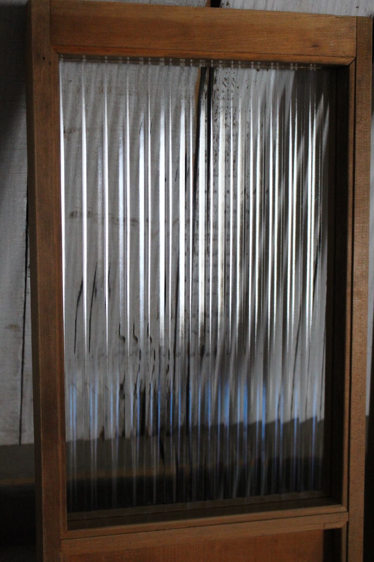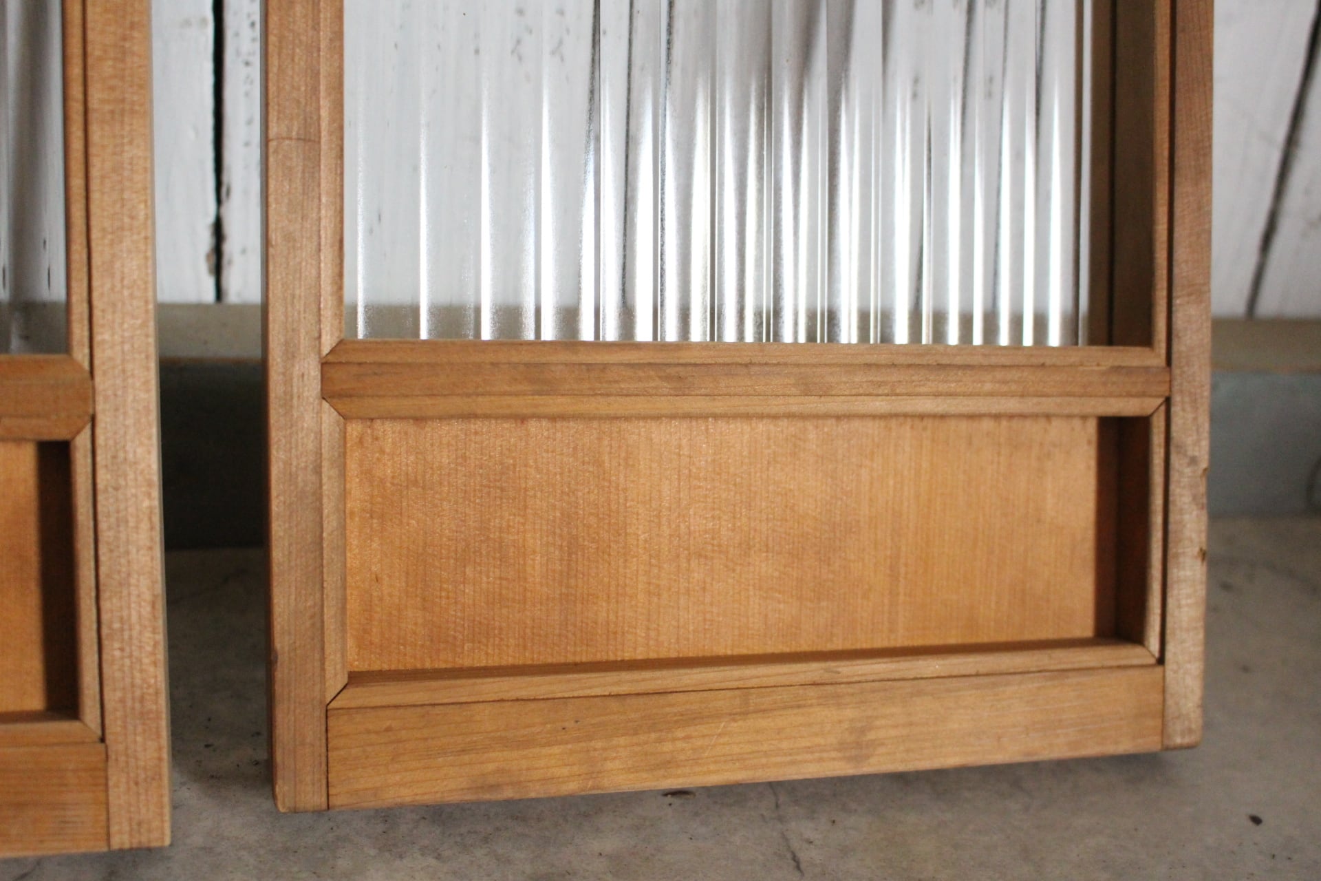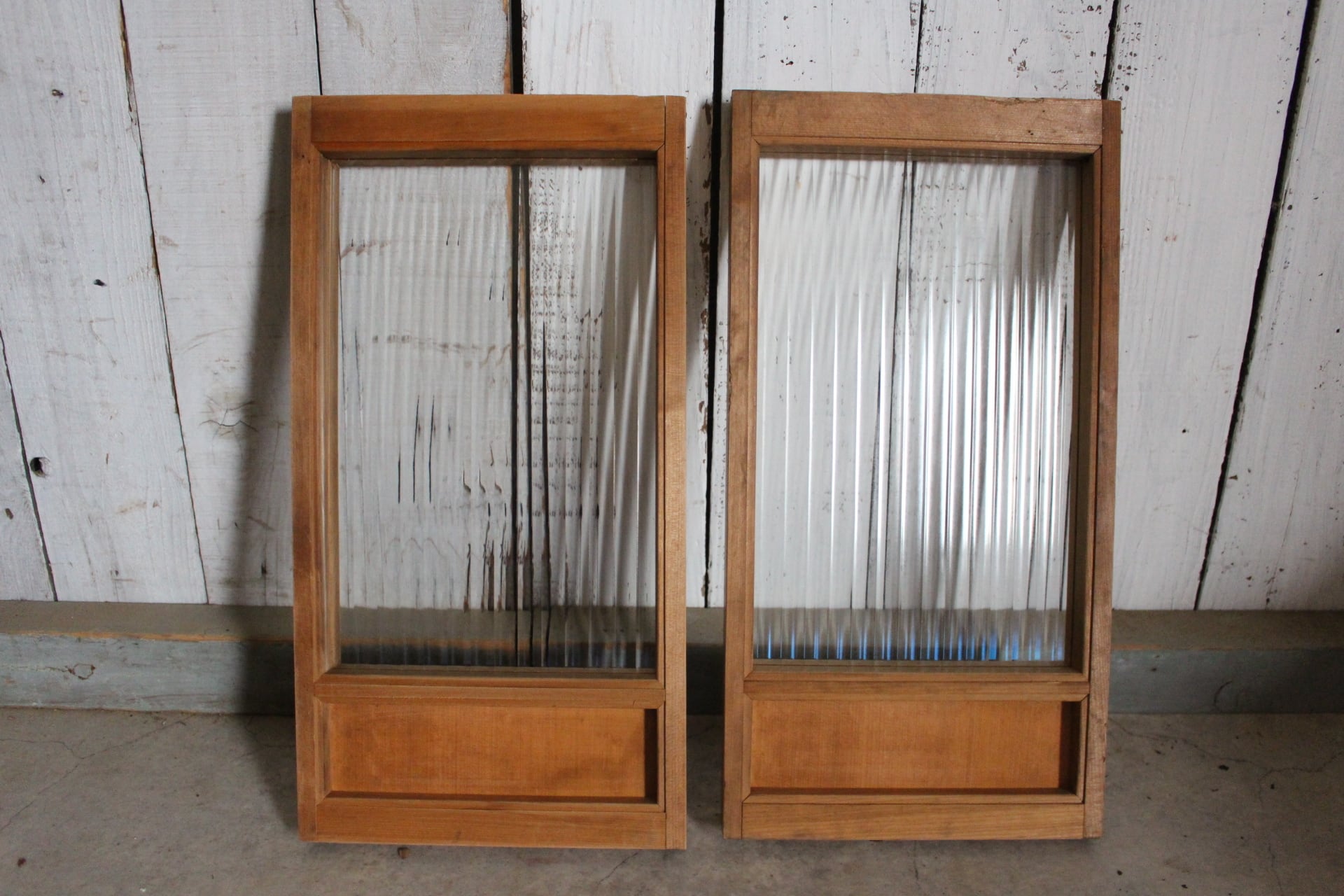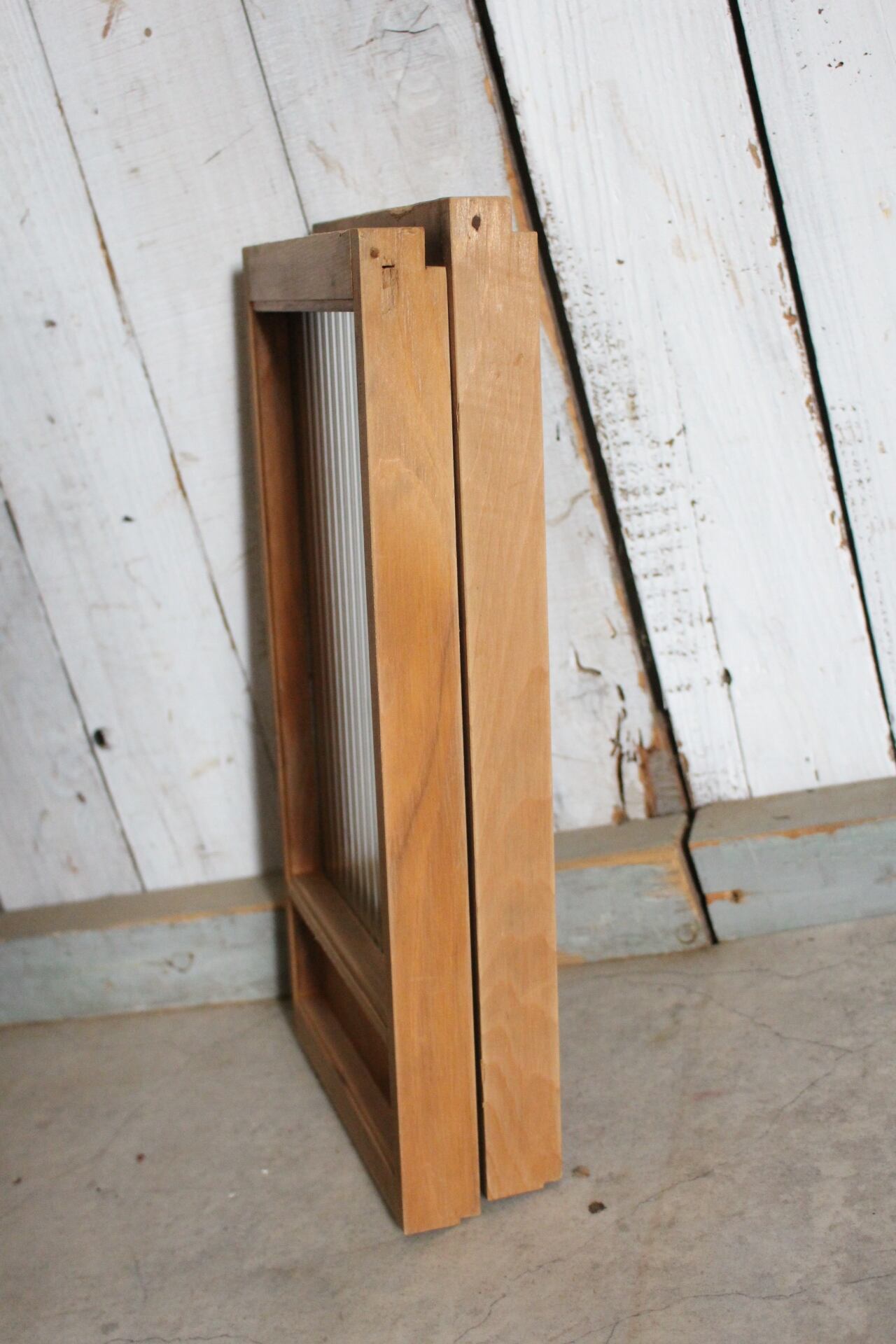 古い小さな木枠のモールガラス戸 2枚セット