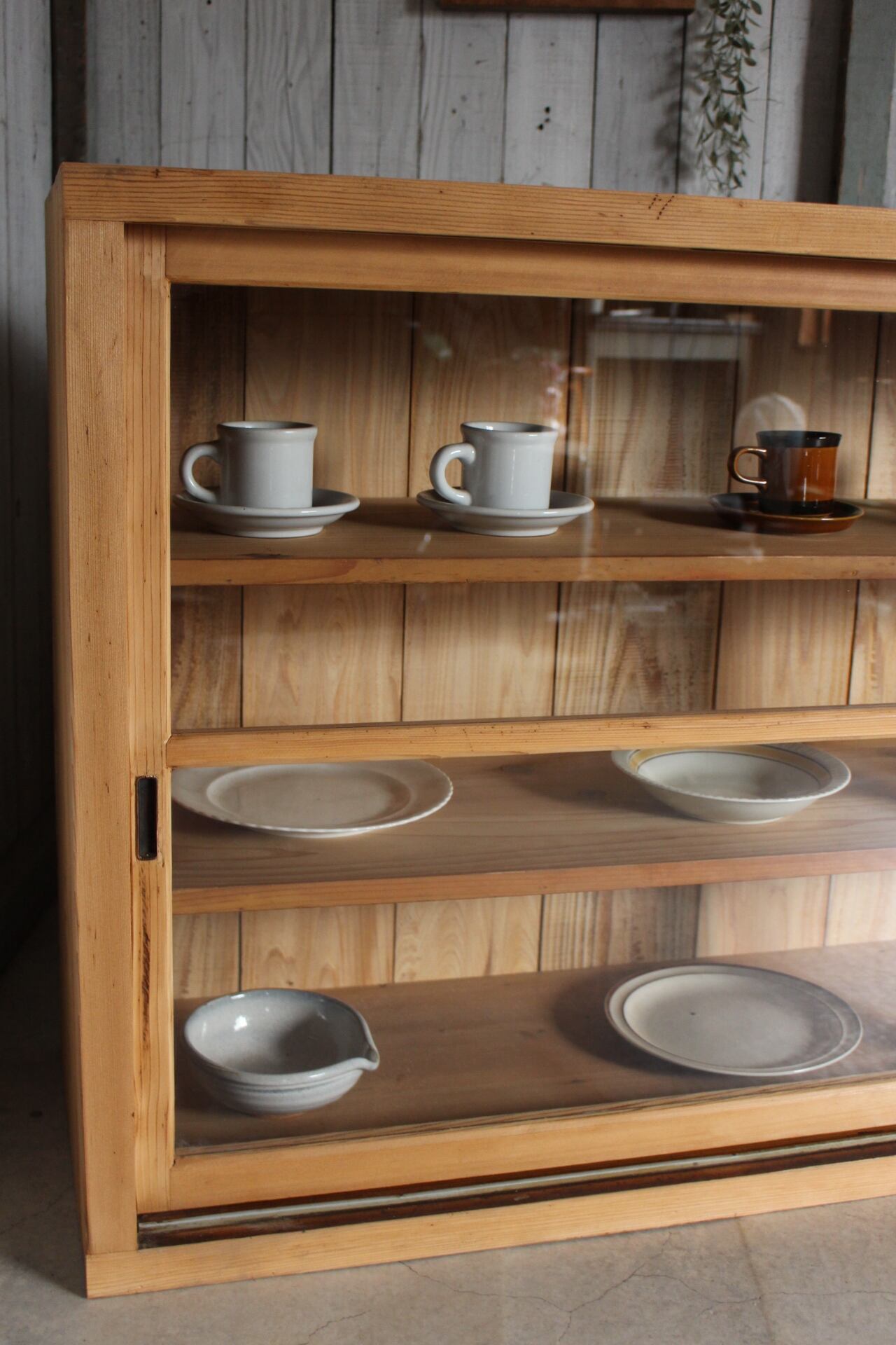 古い大きなガラス戸棚です。