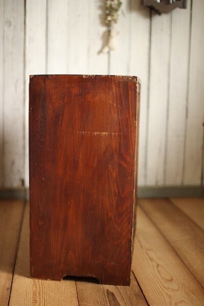 古い小ぶりなモールガラス戸の木製収納棚4段 食器棚 古家具 陳列棚