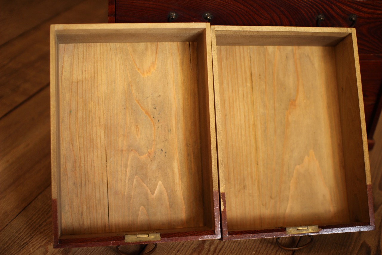古い小ぶりな欅製の引き出し7杯 手許箪笥 小引き出し 古家具 古民家