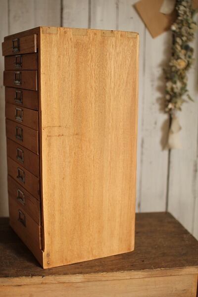 古い木製の小引き出し10段 書類棚 レターケース 古道具 古家具 収納