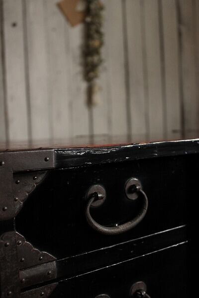 枠の塗装に多少の色あせは見られますが、時代物としては綺麗な状態かと思います。前面の黒漆塗りは丁寧に仕上げており、艶があり綺麗な状態です。