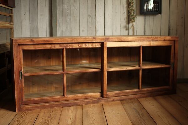 古い木製のガラス格子戸棚