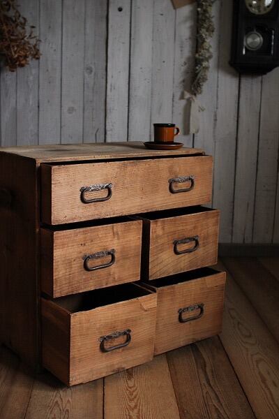 古い木製の引き出し5杯