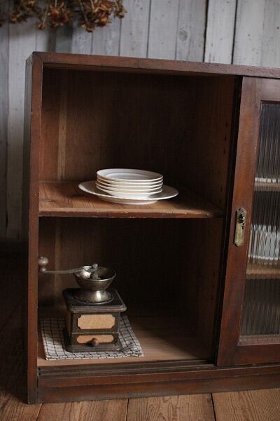 古いモールガラス戸の収納棚です。