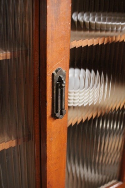 アンティーク 古いモールガラス戸の木製収納棚