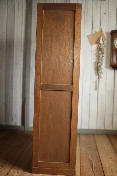 古いダイヤガラス扉の収納棚 引き出し5杯